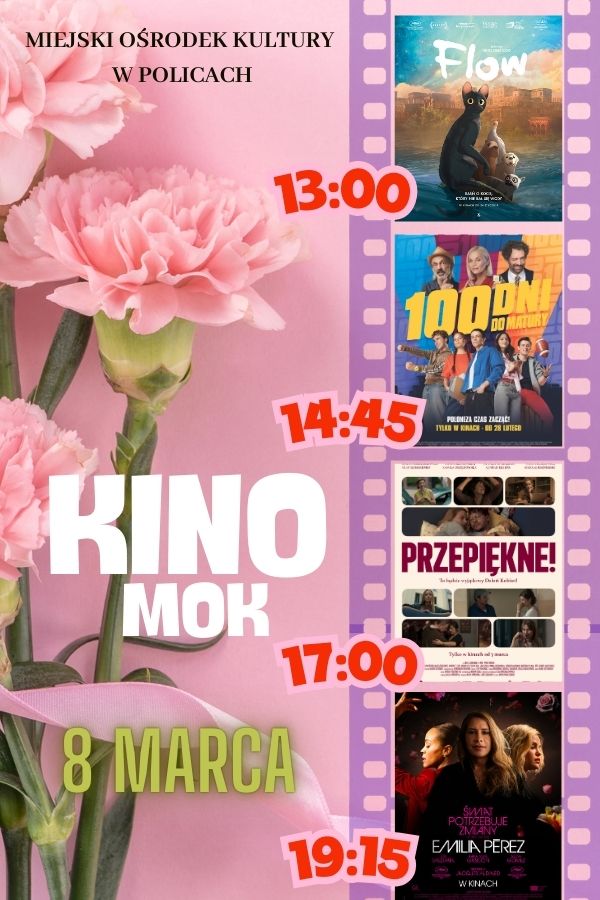 Kino Miejskiego Ośrodka Kultury zaprasza na seanse w Dniu Kobiet! Wyjątkowo kobiecy repertuar, wspaniałe kreacje aktorskie, ujmujące opowieści, kino o kobietach i dla kobiet, ale nie tylko – na seanse zapraszamy wszystkich, którzy sobotnie popołudnie chcą spędzić, delektując się pięknymi kadrami, nastrojową muzyką i poruszającymi do głębi historiami. Dzieciom z pewnością przypadnie do gustu historia kota i towarzyszących mu zwierząt, które łączą siły, by stawić czoła czyhającemu na nich zagrożeniu w nowym świecie. Na młodzież czeka komedia o grupie polskich maturzystów i szalonym planie, który może zmienić bieg historii. A nieco później dwie fantastyczne produkcje, w których losy kobiet splatają się ze sobą, tworząc emocjonującą mieszankę, zostawiającą pole do refleksji i przemyśleń. Przepiękne to polski film o wyzwaniach, marzeniach i odwadze, potrzebnej do ich spełnienia. Natomiast Emilia Perez, która zostanie wyświetlona w cyklu Kino konesera, to opowieść o czterech kobietach, z których każda szuka w Meksyku szczęścia, wybierając nieoczywistą drogę do osiągnięcia celu.