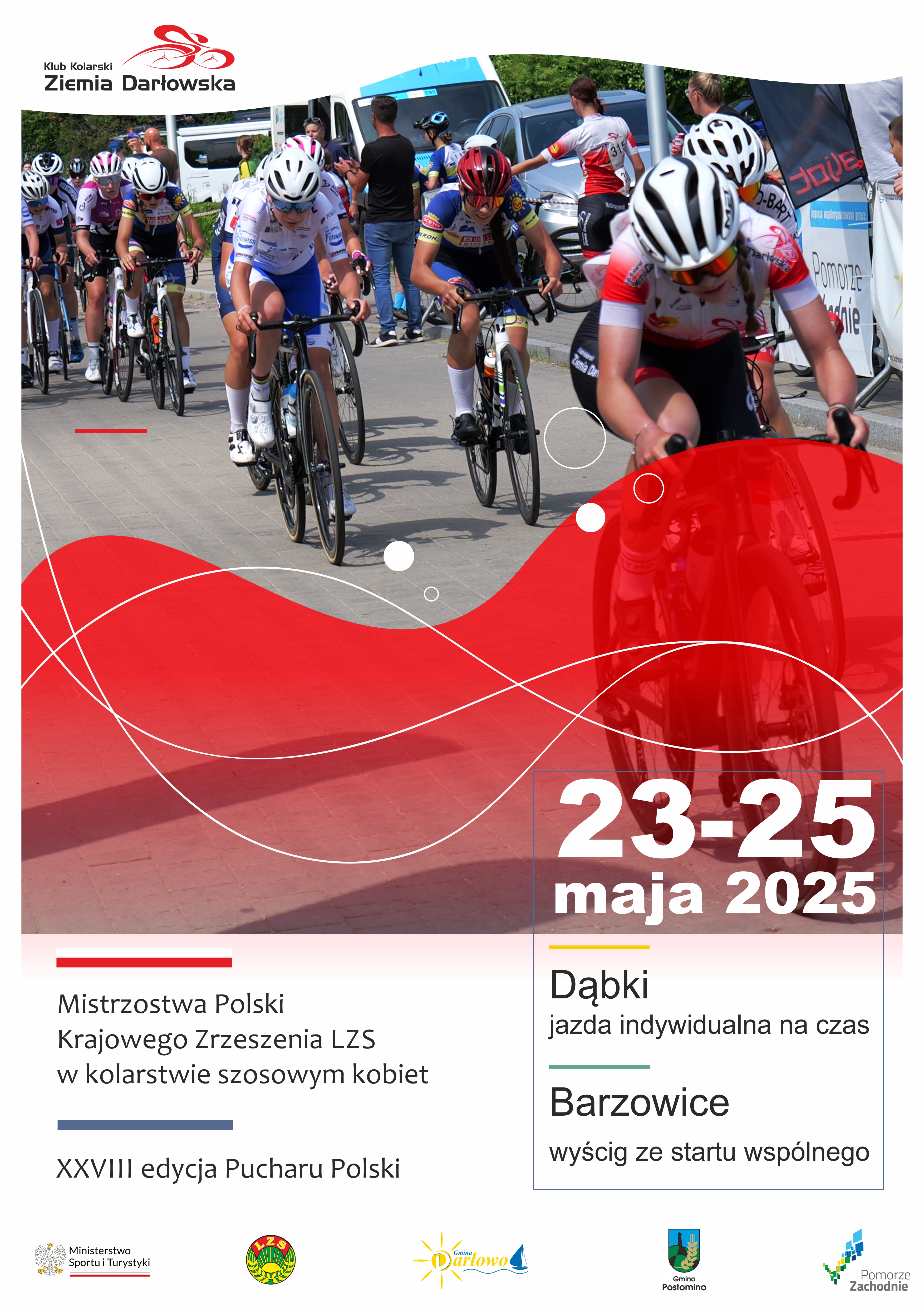 Klub Kolarski Ziemia Darłowska oraz Gmina Darłowo zaprasza na wyjątkowe sportowe wydarzenie – Mistrzostwa Polski Zrzeszenia LZS w Kolarstwie Szosowym Kobiet oraz Puchar Polski w jeździe indywidualnej na czas, które odbędą się w Dąbkach! W rywalizacji weźmie udział blisko 400 zawodniczek i zawodników z całej Polski, które zmierzą się o tytuł mistrzyń oraz cenne punkty w Pucharze Polski. To doskonała okazja, by na własne oczy zobaczyć zmagania najlepszych kolarek szosowych, poczuć sportowe emocje i dopingować zawodniczki na trasie. Serdecznie zapraszamy wszystkich miłośników kolarstwa oraz sportowej rywalizacji do kibicowania i wspólnego przeżywania tego wyjątkowego wydarzenia!