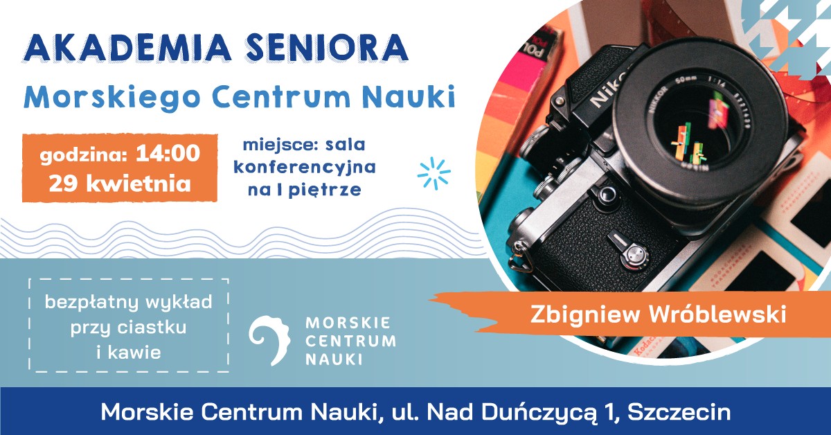 W ramach 7. spotkania Akademii Seniora Morskiego Centrum Nauki zapraszamy na wyjątkową prelekcję jednego z najważniejszych szczecińskich dokumentalistów XX wieku – Zbigniewa Wróblewskiego, który zabierze nas w sentymentalną podróż po Szczecinie sprzed kilkudziesięciu lat – mieście, jakiego już nie ma. Zobaczymy jego ulice, twarze i ważne wydarzenia uchwycone w kadrze: Festiwal Młodych Talentów, dramatyczne wydarzenia Grudnia ’70, przełomowy Sierpień ’80 oraz sylwetki słynnych Chłopców z „Sorrento”. To będzie wyjątkowe spotkanie z historią, emocjami i obrazami, które zatrzymały czas. Zbigniew Wróblewski – fotograf, filmowiec, pasjonat historii i życia miasta – od lat dokumentuje rzeczywistość z niezwykłą wrażliwością. Absolwent Studium Fotografii i Filmu COMUK, specjalizuje się w fotografii reportażowej i dokumentalnej. Jego prace były prezentowane zarówno w Polsce, jak i za granicą – m.in. we Francji, Wielkiej Brytanii czy na Sri Lance. Od dekad związany ze szczecińskim środowiskiem fotograficznym jako prezes, instruktor, kurator i animator kultury, Wróblewski nie tylko tworzy, ale i dzieli się swoją wiedzą, inspirując kolejne pokolenia miłośników fotografii. Na spotkanie zapraszamy 29.04.2025 o godz. 14:00 do Sali Konferencyjnej Morskiego Centrum Nauki (I piętro).