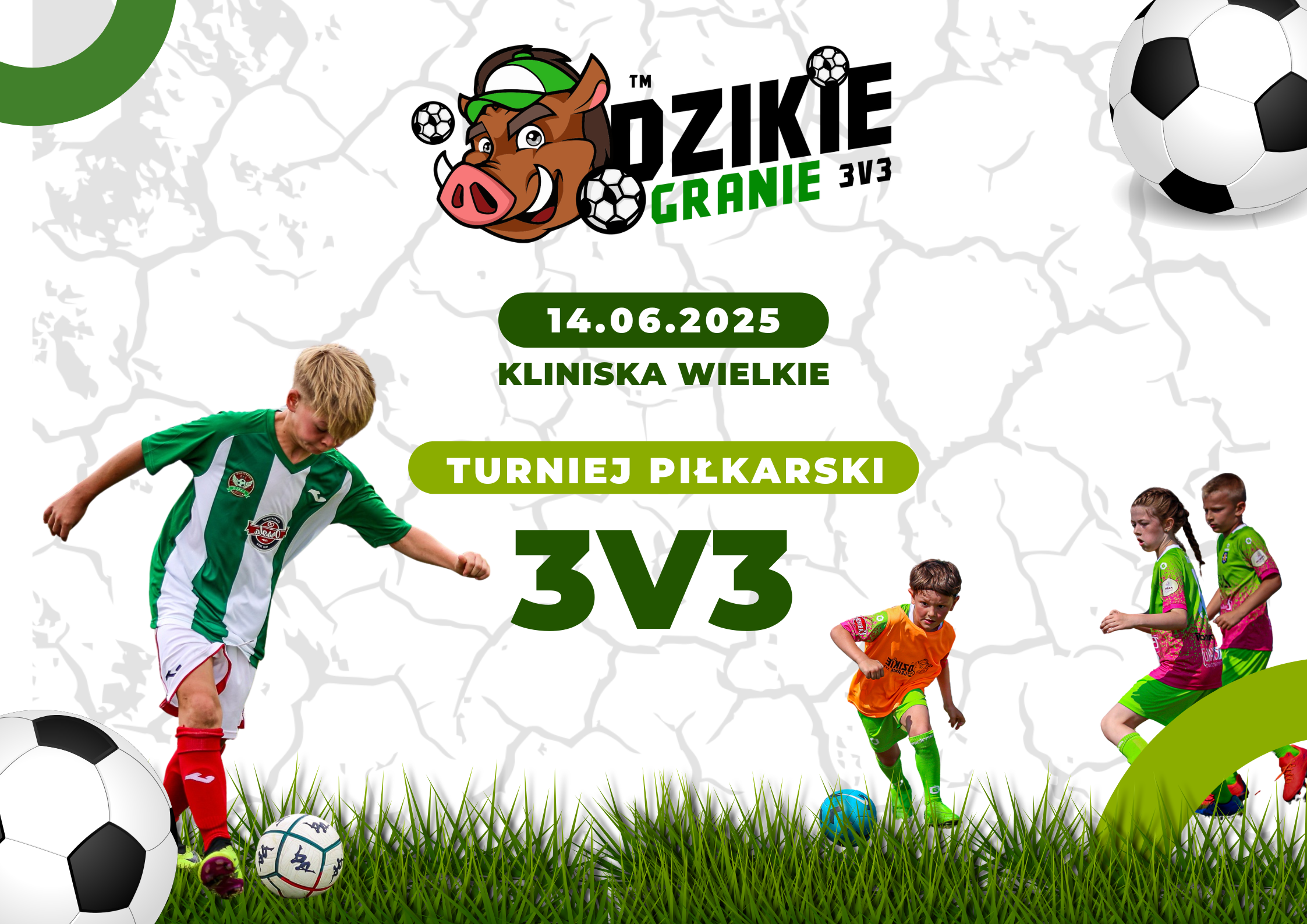Dzikie Granie 3v3 to turniej piłki nożnej dedykowany dla dzieci od 5 do 12 lat, w tym roku jest to jego trzecia edycja. Ubiegłoroczna edycja zebrała bardzo dużo pochlebnych recenzji zarówno od uczestników, jak i od partnerów. W czasie turnieju odbędzie się festyn sportowo-edukacyjno-rekreacyjny. Przewidywana ilość uczestników to około 700 osób. Promowanie piłki nożnej wśród dzieci a także zasad fair play, wychowanie poprzez sport oraz kształtowanie zdrowego stylu życia i aktywizacja lokalnych środowisk sportowych. Promowanie aktywności na świeżym powietrzu. Edukacja poprzez zabawę. Dobra zabawa