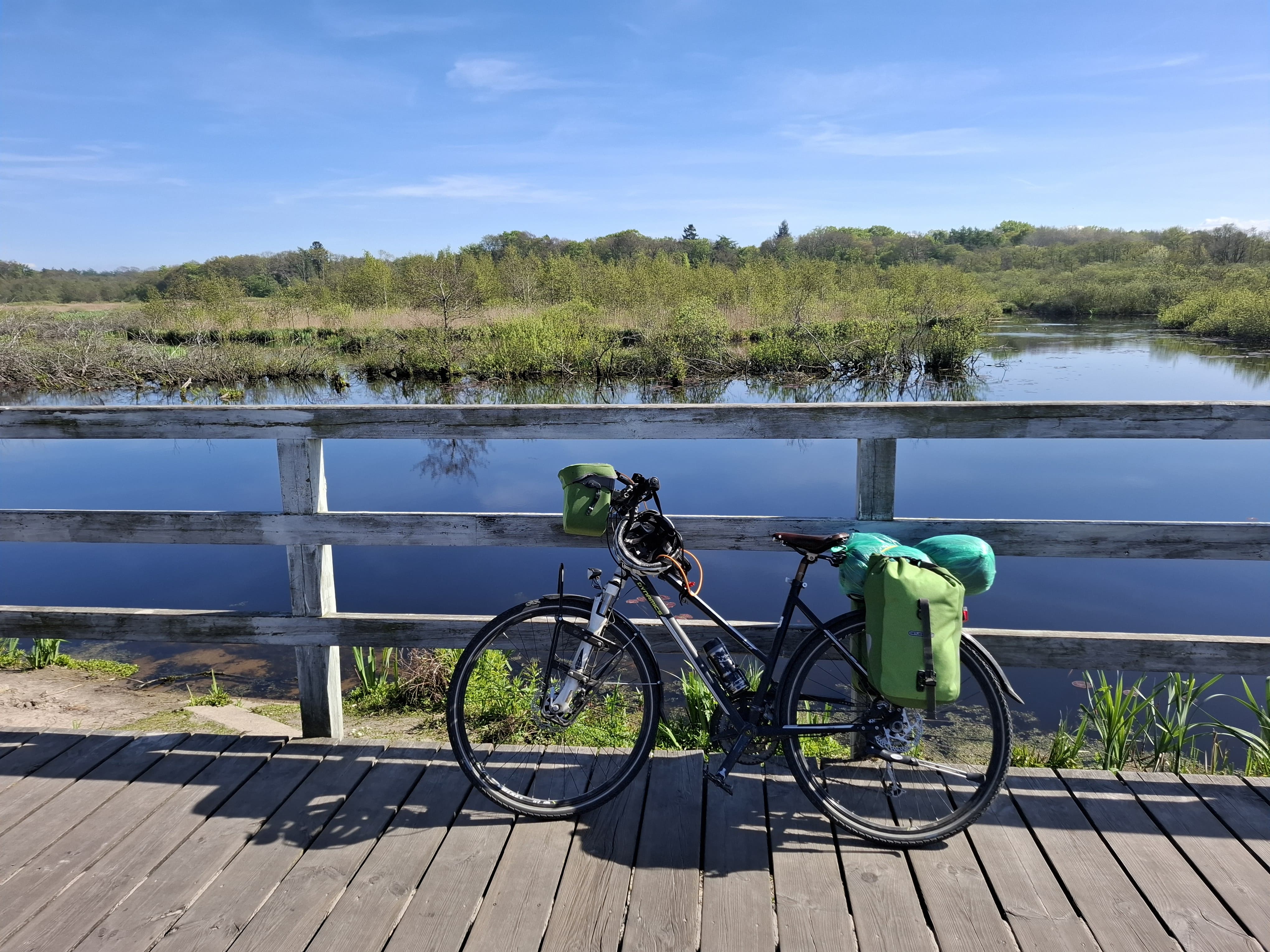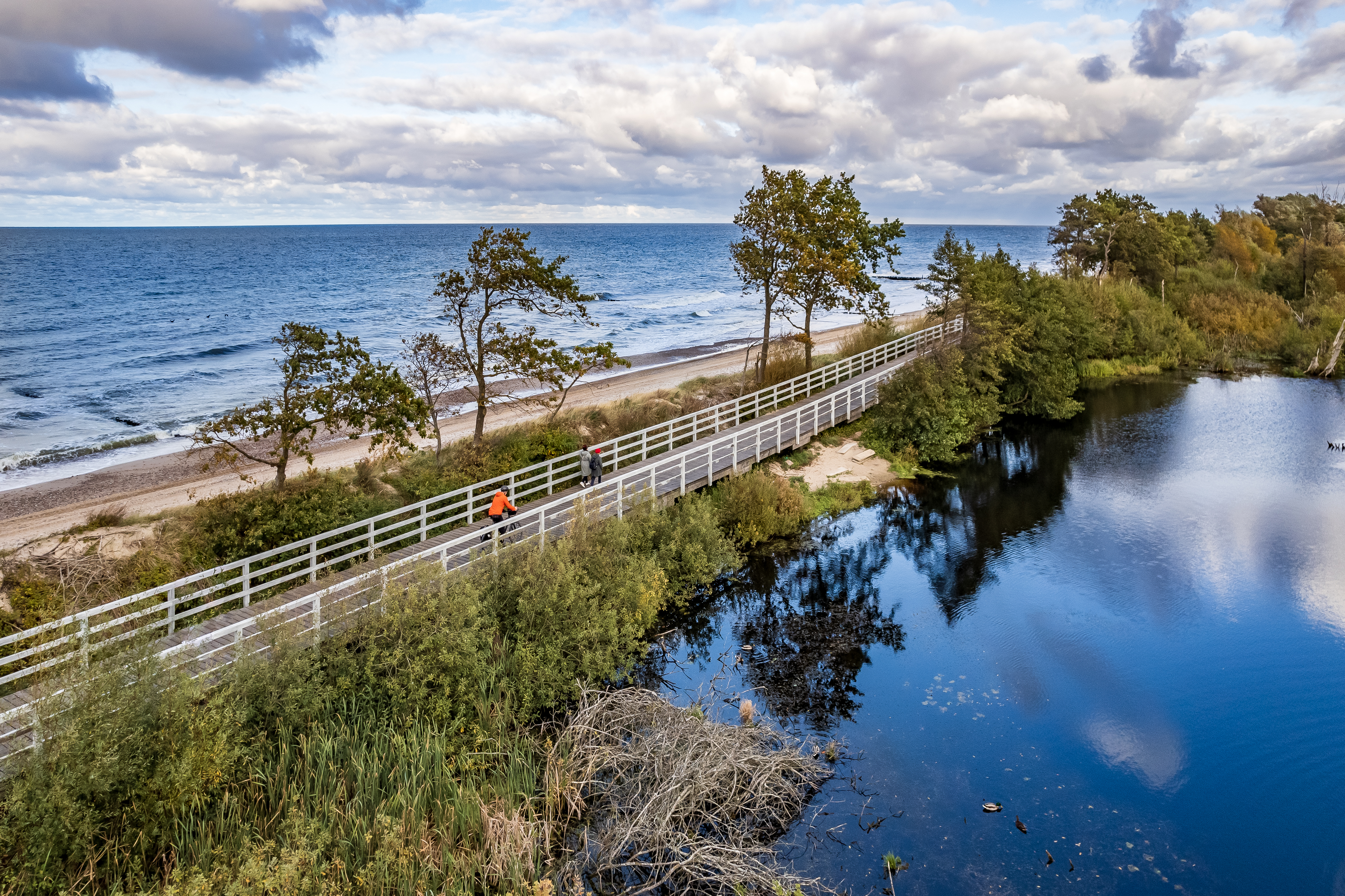 Drewniana kładka z punktem widokowym na Ekopark Wschodni.