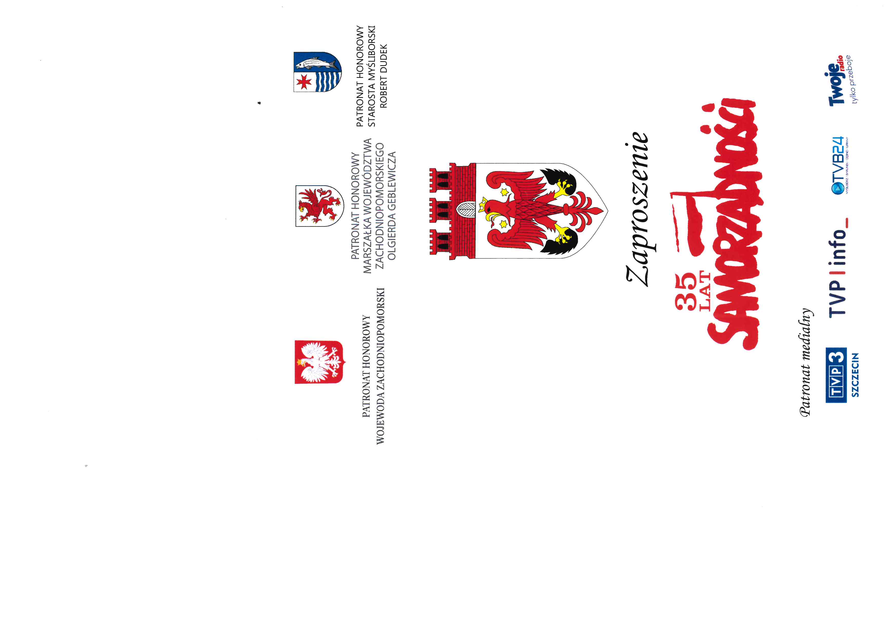 35 - lecie samorządu terytorialnego w Myśliborzu Program uroczystości: Godz. 12:00 - uroczysta msza św. w intencji mieszkańców Miasta i Gminy Myślibórz z okazji 35 lecia samorządu terytorialnego - Kolegiata Myśliborska pw.św. Jana Chrzciciela w Myśliborzu Po mszy św.: złożenie kwiatów przy pomniku "Pionierom Ziemi Myśliborskiej" Godz. 13:30 Uroczysta sesja Rady Miejskiej w Myśliborzu (sala widowiskowa Myśliborskiego Ośrodka Kultury w Myśliborzu, ul. Klasztorna 3) Godz. 15:00 Spotkanie integracyjne samorządowców (Przystań Szkuner, ul. Marcinkowskiego 5)