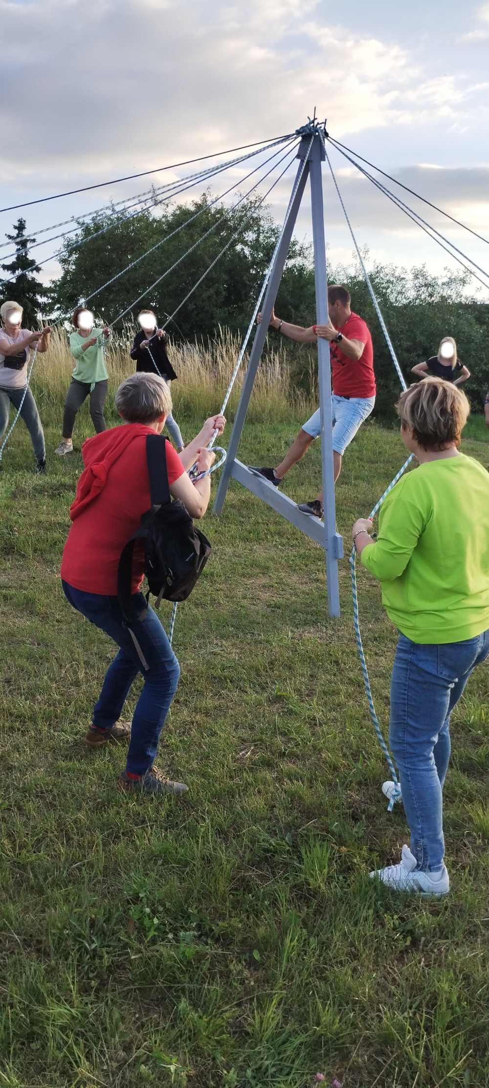 TEAM BUILDING”, którego celem jest budowanie i integrowanie grupy ludzi poprzez wspólne wyzwania, ustalanie strategii, aby osiągnąć wspólny cel oraz aktywne współdziałanie w ramach zespołu. Można wybrać różne dynamiczne aktywności terenowe np.: tor przeszkód z goglami animacyjnymi, wieloosobowe narty, „latające dywany” „żywe czołgi”, przeciąganie liny czy też grę w tenisa stołowego. Zajęcia spokojniejsze i wymagające ruszenia „szarych komórek” to np. „Zagrodowe Koło Fortuny”, ustawianie na linach wieży z drewnianych klocków, „Sielankowa Polka” z żywych klocków, tematyczne prezentacje multimedialne z zadaniami, quizy, krzyżówki – to dla starszych. Jeśli chcesz możesz sprawdzić, czy masz „dobre oko” w strzelaniu z wiatrówki (broń długa i krótka) lub w strzelaniu z łuku do tarczy.