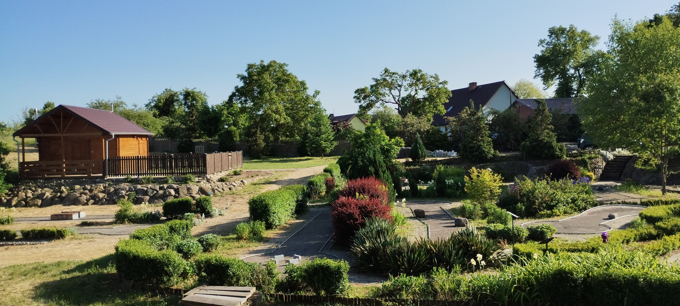 Jadąc można zauważyć odpowiednie oznaczenia. Nasza Zagroda jest doskonałym miejscem na odpoczynek i przerwę w podróży dla każdego rowerzysty. Ofertę dostosowujemy do potrzeb naszych gości, określonego czasu, kondycji i wieku. Grupy mogą być zróżnicowane wiekowo. Nasi goście mogą wybrać, jak chcą spędzać czas i w co się chcą bawić. Główną naszą atrakcją sportowo-relaksową jest profesjonalne, pełnowymiarowe pole do minigolfa typu „concrete”. Można na nim zagrać na 18 betonowych torach z różnymi przeszkodami (dł. toru 12 m). Na tej trasie u nas możesz łapać bezpieczne „dołki”, w które wpada tylko piłka. Minigolf to doskonała rozrywka dla każdego –dużego i małego. Nie wymaga szczególnych umiejętności , ani niezwykłej sprawności fizycznej. Gra może spodobać się dorosłym i młodzieży - można rozegrać turniej. Do gry w minigolfa zapewniamy: kije golfowe typu „putter”, specjalne piłki do minigolfa, karty startowe, dyplomy i opiekę instruktora. Młodszym dzieciom proponujemy minigolfa w formie zabawowej np. poszukiwanie słodkiego „skarbu”, gdzie dzieci zdobywają dołki , aby zdobyć kolejne literki wskazówki, gdzie go szukać. Pole do minigolfa znajduje si ę wśród kwiatów i zieleni. Oferujemy ceny, które mogą spodobać się gościom. Cenimy przysłowiowe mądrości, więc u nas możecie też przypomnieć sobie znane przysłowia i powiedzenia. Uczymy ich poprzez zabawę i gry terenowe.