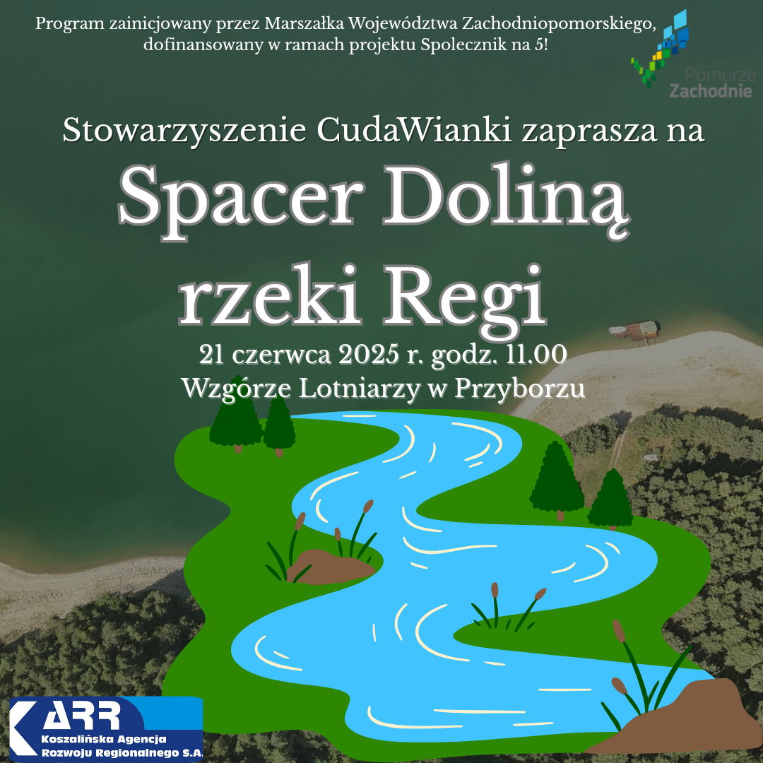 Zapraszamy na spacer Doliną rzeki Regi, który rozpocznie się na Wzgórzu Lotników w Przyborzu, gm. Łobez. Podczas spaceru posprzątamy trasę, którą będziemy się poruszać. Po spacerze zapraszamy na poczęstunek.