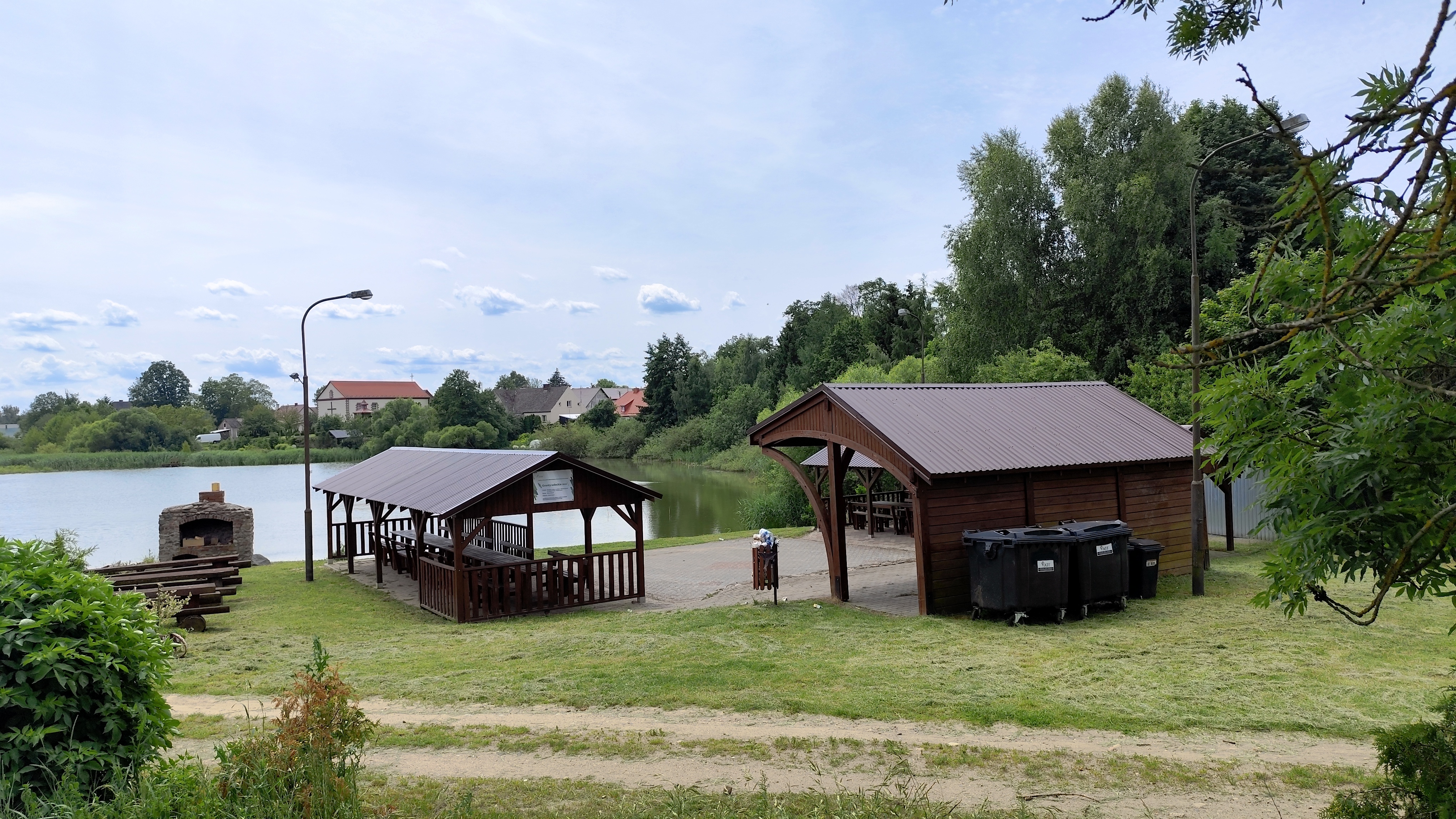 Położony malowniczo nas wiejskim stawem. Znajdują się tu stoły piknikowe i duża wiata.