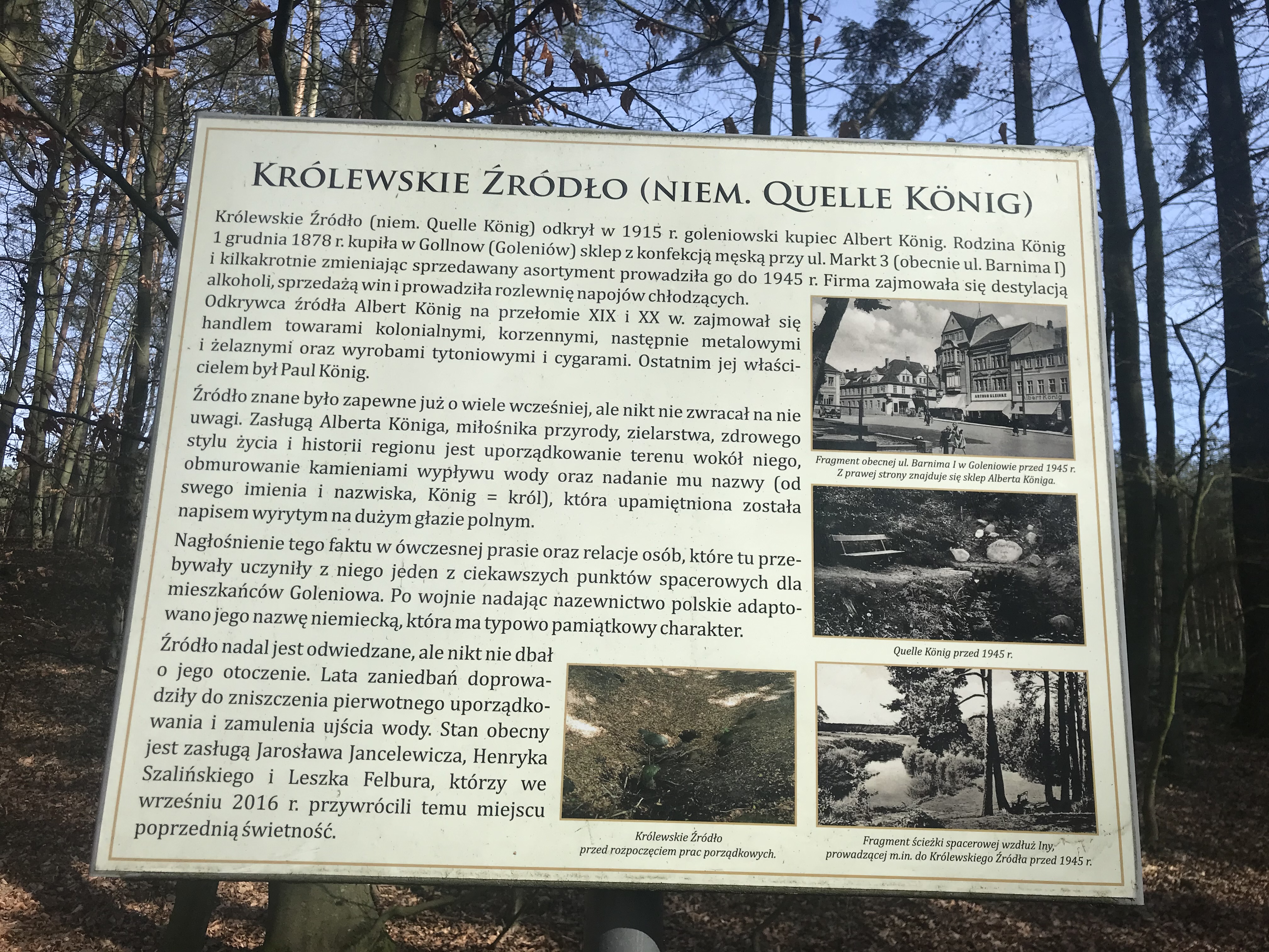 Królewskie Źródło (niem. Quelle König) to historyczne miejsce położone w okolicach Goleniowa, odkryte w 1915 roku przez Alberta Königa – lokalnego kupca i miłośnika przyrody. Źródło zostało uporządkowane i obmurowane kamieniami, a jego nazwa pochodzi od nazwiska odkrywcy (König = król). Przez lata było popularnym punktem spacerowym, jednak zaniedbania doprowadziły do jego zniszczenia. W 2016 roku zostało odrestaurowane przez Jarosława Jancelewicza, Henryka Szalińskiego i Leszka Felbura, odzyskując dawny urok jako lokalna atrakcja przyrodniczo-historyczna.