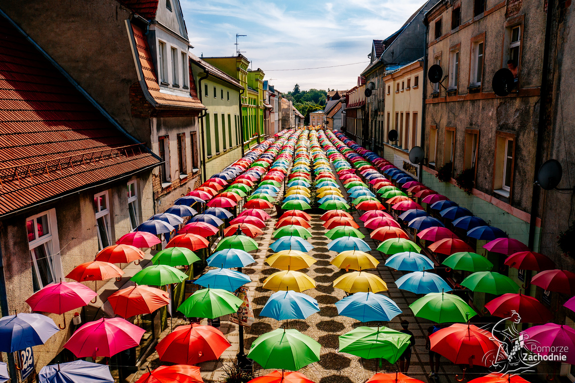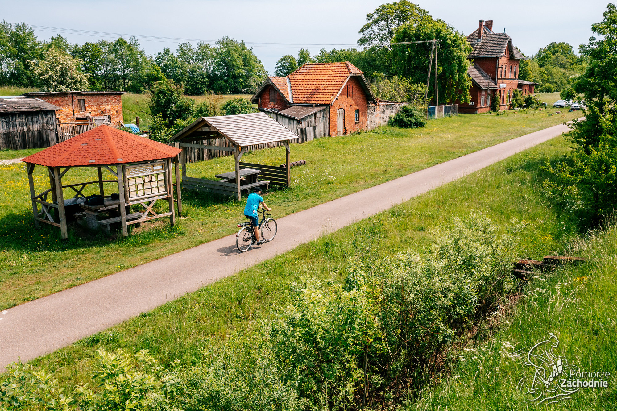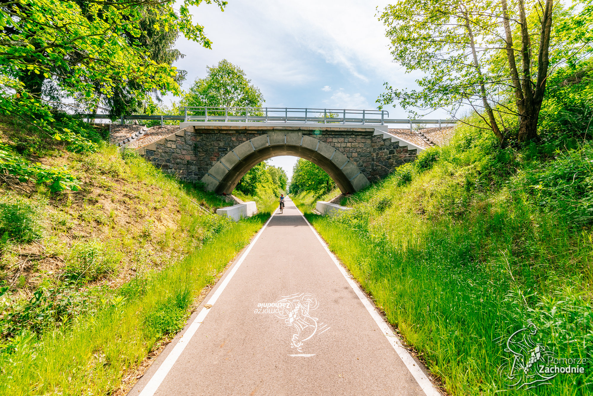 Z pociągu wysiadamy na stacji Świdwin jeśli jedziemy pociągami IC lub Świdwin Zamek gdy podróżujemy POLREGIO. Nie bez powodu start trasy zaczyna się na zamku w Świdwinie. To pierwsze miejsce, a już czeka na nas masa atrakcji. Możemy naładować się enegią przy cieście w Kawiarni na Zamku, uzupełnić bidony darmową wodą, zwiedzić sam zamek, pobrać mapę trasy w Centrum Informacji Turystycznej, a nawet przenocować, gdyż ten obiekt jest w naszej bazie Miejsc Przyjaznych Rowerzystom. JEśli mamy zapas czasu, możemy odbić na chwilę z trasy, by zobaczyć wieżę Bismarcka. Teraz jednak kierujemy się za charakterystycznymi pomarańczowymi znakami ku wyjazdowi z miasta. Pierwszy kilometr jest co prawda w ruchu ogólnym, jednak już po chwili możemy skorzystać z dedykowanej infrastruktury. Wjeżdżamy na trasę poprowadzoną w dużej mierze po dawnych nasypach kolejowych. Ponownie, warto zboczyć na chwilę i odwiedzić Połczyn-Zdrój, by poczuć uzdrowiskowy klimat w Parku Zdrojowym przy źródełku „Joanna” oraz przespacerować się kolorową ulicą Parasoli.