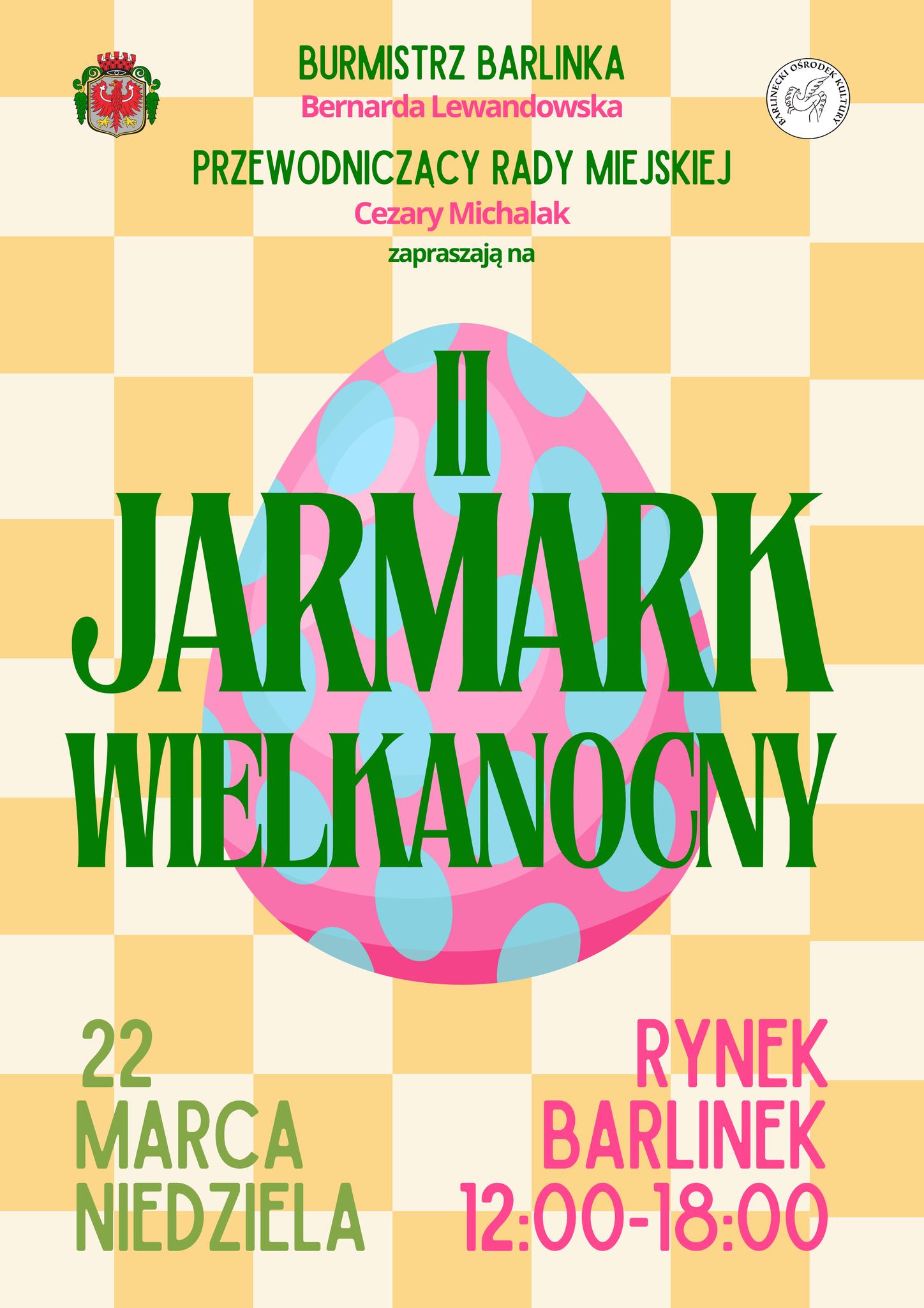 22 marca w godzinach 12.00–18.00 barlinecki rynek wypełni się wiosennymi kolorami, zapachami świątecznych wypieków i rękodziełem lokalnych twórców. Na II Barlinecki Jarmark Wielkanocny zapraszają Burmistrz Barlinka Bernarda Lewandowska oraz Barlinecki Ośrodek Kultury. Na ponad pięćdziesięciu stoiskach pojawią się tradycyjne palmy, pisanki, ceramika, świece, dekoracje i rękodzieło, a także regionalne przysmaki, miody, pierniki i domowe wypieki przygotowane przez koła gospodyń wiejskich i lokalnych producentów. W programie znajdą się również warsztaty wielkanocne, animacje dla dzieci, konkurs na babkę wielkanocną oraz inicjatywy charytatywne. Jarmark to okazja do spokojnych przedświątecznych zakupów i spotkania z lokalnymi twórcami w samym sercu miasta. Mieszkańców, gości i turystów odwiedzających Pomorze Zachodnie zapraszamy do Barlinka na wspólne rozpoczęcie najbardziej kolorowego czasu tej wiosny.