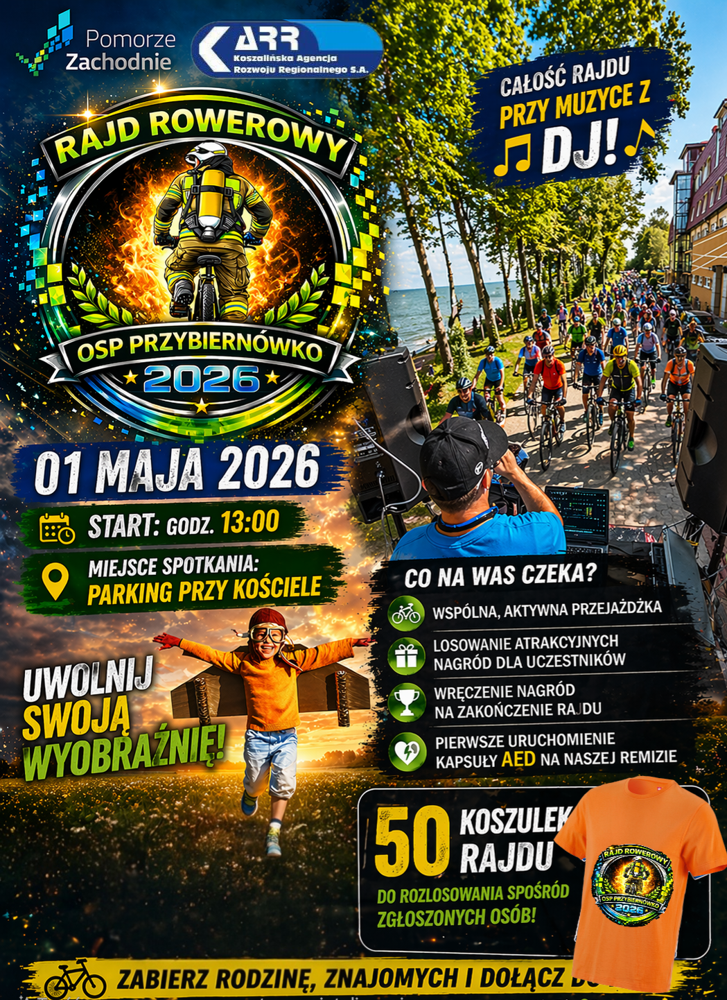 ????‍♂️ RAJD ROWEROWY Z OSP Przybiernówko ! ????‍♀️ ???? 01 maja 2026 r. ???? Start: godz. 13:00 ???? Miejsce zbiórki: parking przy kościele Serdecznie zapraszamy wszystkich mieszkańców i gości do udziału w naszym rajdzie rowerowym! ???? Trasa: Przybiernówko - Grądy - Modlimowo - Przybiernówko ???? Przygotowaliśmy dla Was: ✔ wspólną, aktywną przejażdżkę ???? ✔ losowanie atrakcyjnych nagród dla uczestników ???? ✔ wręczenie nagród na zakończenie rajdu ✔ pierwsze uruchomienie kapsuły AED przy naszej remizie ❤️ ✔ świetną atmosferę – całość rajdu przy muzyce z DJ ???????? ???? To idealna okazja do integracji, ruchu i dobrej zabawy! ???? Spośród zgłoszonych osób rozlosujemy 50 koszulek dla uczstników rajdu! ???? Nie może Was zabraknąć! Zabierz rodzinę, znajomych i widzimy się na starcie! ????Bo liczy się dobra zabawa???? ???? A wszystko to dzięki realizacji projektu Społecznik – programu zainicjowanego przez Marszałka Województwa Zachodniopomorskiego.