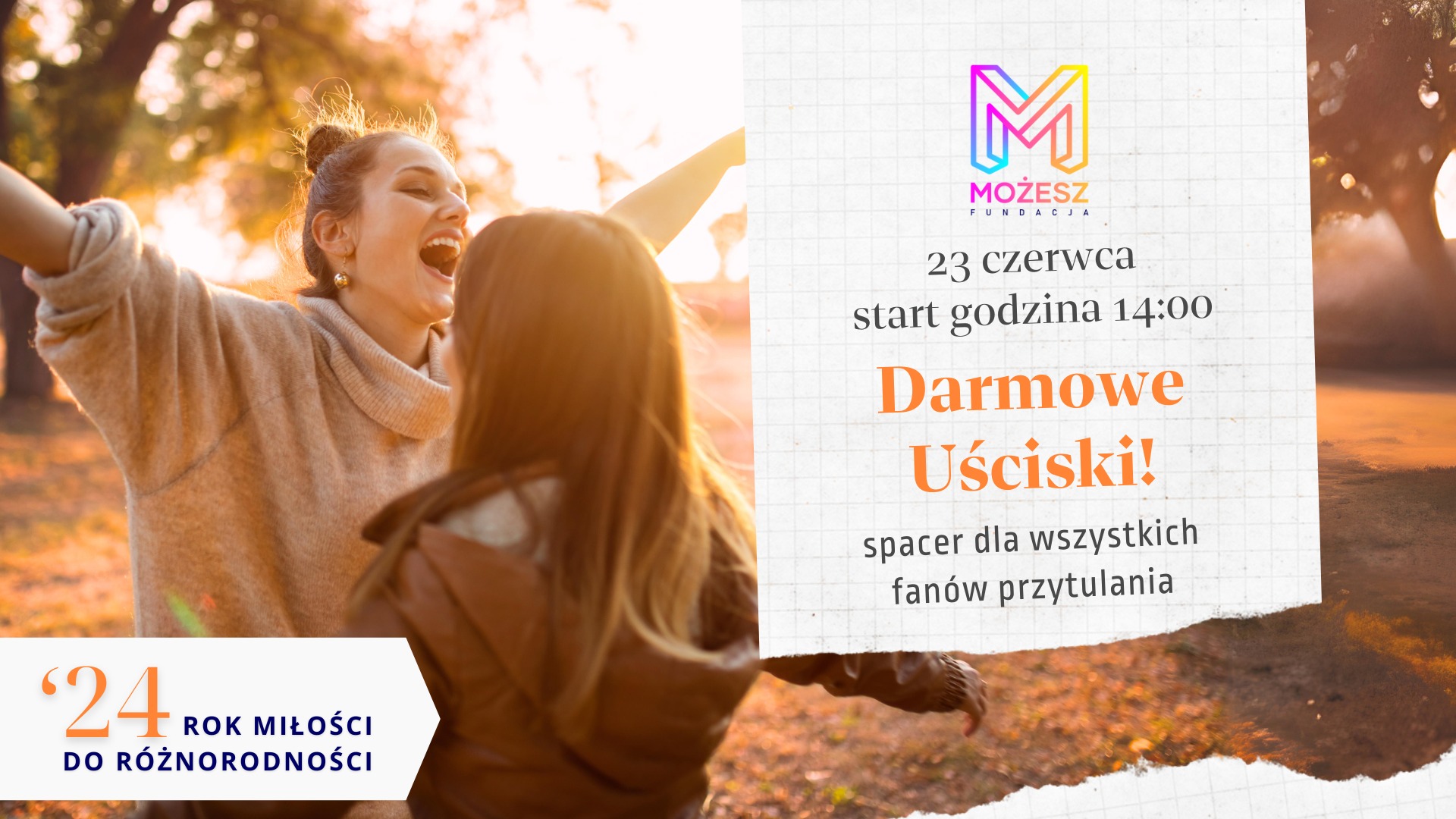 Zapraszamy na niezwykłe wydarzenie - Free Hugs - Darmowe Uściski! To spacer dedykowany wszystkim fanom przytulania, którzy chcą podzielić się miłością i pozytywną energią z całym światem. ???????? ???? START: Fontanna Bartłomiejka - fontanna przed Urzędem Miasta Szczecin przy Jasnych Błoniach (Karola Szymanowskiego 3) META: Ogród Różanka ????‍♂️???? TRASA: Jasne Błonia, Pomnik Trzech Orłów, Juliana Fałata (obok Teatru Letniego), Różanka ⏰ Kiedy? 23.06 start: 14:00 Idea akcji Free Hugs jest prosta - chcemy pokazać, że małe gesty, takie jak uścisk, mogą mieć ogromny wpływ na nasze życie i relacje z innymi ludźmi. To moment, w którym możemy zapomnieć o codziennych troskach i po prostu przekazać ciepło i wsparcie tym, którzy go potrzebują. ????✨ To wydarzenie jest jednym z elementów cyklu działań organizowanych przez Fundację MOŻESZ w ramach 2024 Roku Miłości do Różnorodności. Jesteśmy przekonani, że akceptacja i szacunek dla różnic są fundamentem budowania lepszego świata, dlatego też Free Hugs jest otwarte dla wszystkich - bez względu na wiek, płeć, orientację seksualną czy niepełnosprawność. ???????? Pragniemy, by nasze wydarzenie było jak najbardziej dostępne dla wszystkich, dlatego zapewniamy przyjazne środowisko także dla osób z niepełnosprawnościami oraz ze środowiska LGBTQ+. ????️‍????♿ Dodatkowo, przed samym spacerem, zapraszamy do wzięcia udziału w warsztatach tworzenia banerów z napisem "Free Hugs / Darmowe uściski". To doskonała okazja, by dać upust swojej kreatywności i jeszcze bardziej włączyć się w naszą akcję. ????????️ Informację o warsztatach opublikujemy w wydarzeniu już niedługo! Dołącz do nas i podziel się uśmiechem oraz uściskiem - razem możemy stworzyć świat pełen miłości i akceptacji! ????