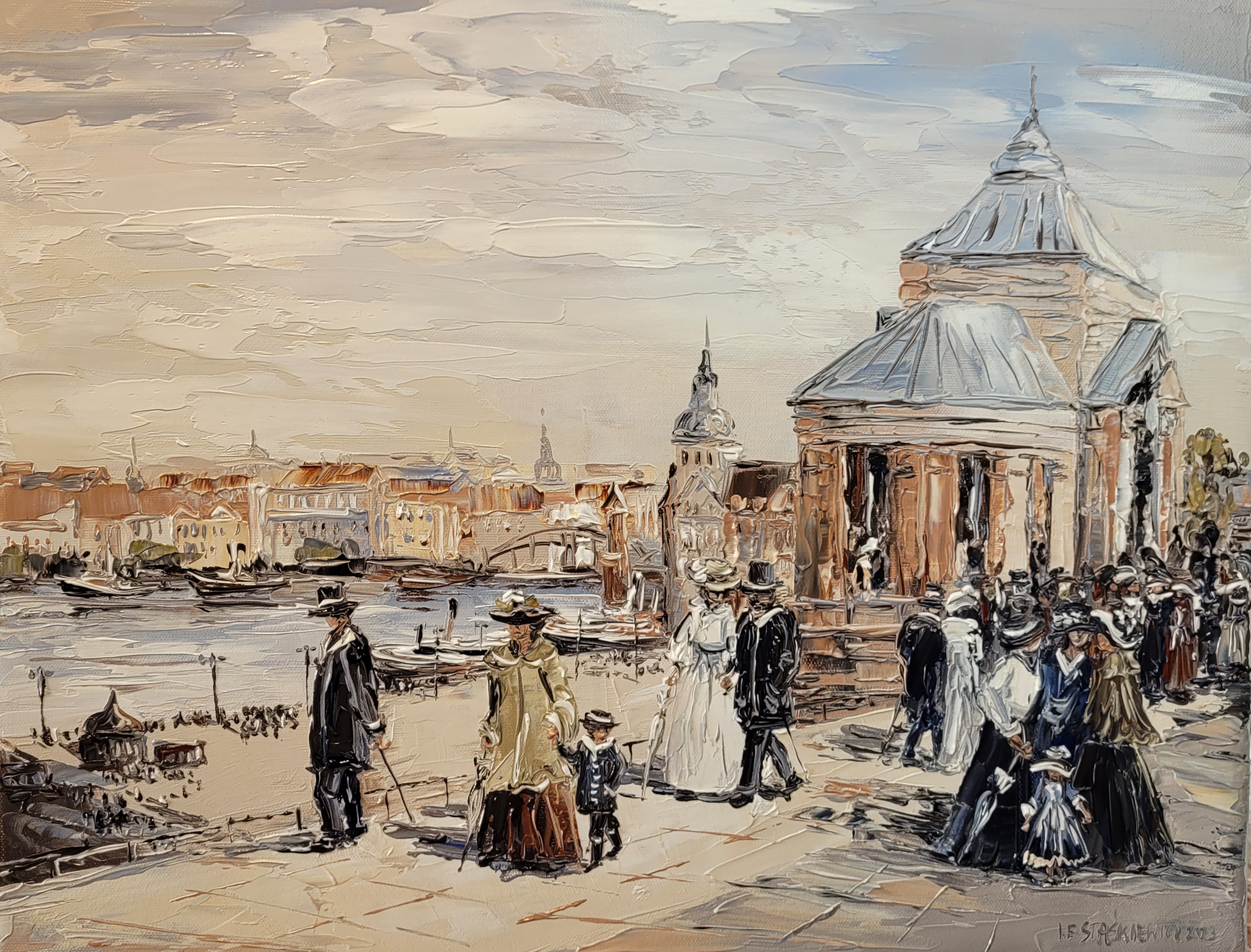 W cyklu obrazów o tematyce szczecińskiej, artystka nie pierwszy raz powraca do przeszłości. Wędrując dawnymi ulicami miasta, pokazuje zakątki i budowle, które nie przetrwały do naszych czasów. Jak miło jest choć otrzeć się o historię i pobudzić wyobraźnię, chłonąc tamten świat wszystkimi zmysłami. Usłyszeć oczyma zgiełk nadodrzańskich bulwarów, ryneczków czy ulic. Choć szczegóły są nie zawsze czytelne, wiele fragmentów przesłania mgła oddalenia, to atmosfera miasta, jego obraz sprzed lat jest dla niej bardzo sugestywny. Lubi ukazywać na swoich płótnach motywy z naszego miasta sprzed dziesięcioleci. To niezwykle wzruszające i inspirujące zarazem. Cykl obejmuje 20 nowych obrazów, namalowanych techniką impasto, olejną na płótnie. Spacer po dawnym wielkomiejskim Szczecinie będzie z pewnością niezwykle interesującym przeżyciem!