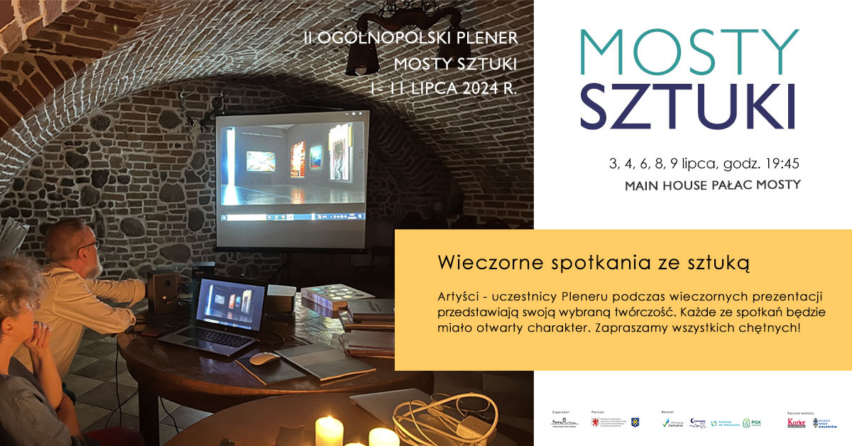 " Begegnungen mit der Kunst am Abend" ist eine Reihe von Treffen mit den Künstlern, die am 2. Nationalen Plein-Air "Bridges of Art" teilnehmen, bei denen sie ausgewählte Werke präsentieren und über den Prozess und die Werke sprechen werden. Die Treffen finden im Main House Palace Mosty statt - der Charakter der Treffen ist offen - alle sind willkommen!