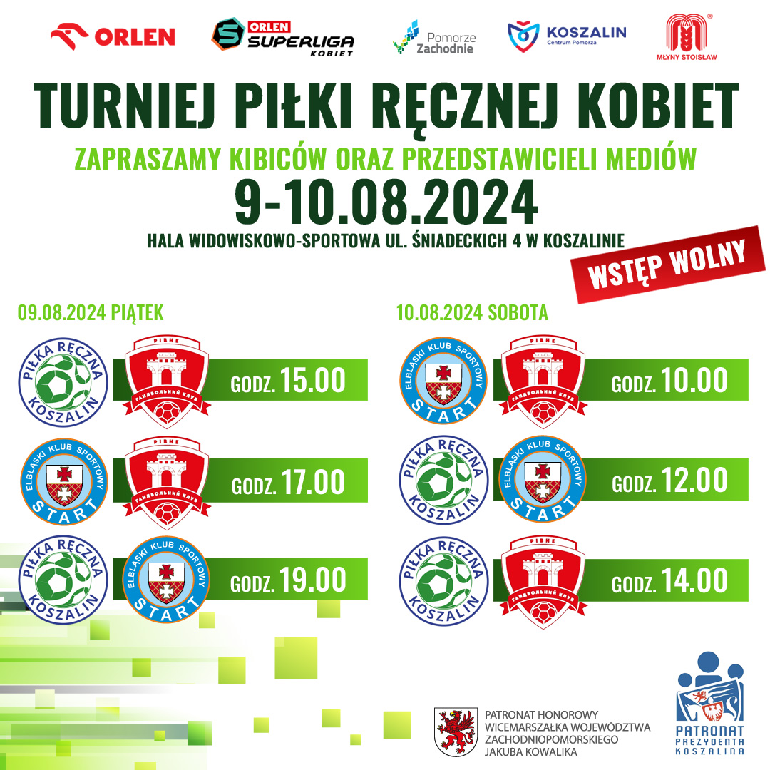 Turniej Honorowymi Patronatami objęli: Tomasz Sobieraj- Prezydent Miasta Koszalina oraz Jakub Kowalik- Wicemarszałek Województwa Zachodniopomorskiego.