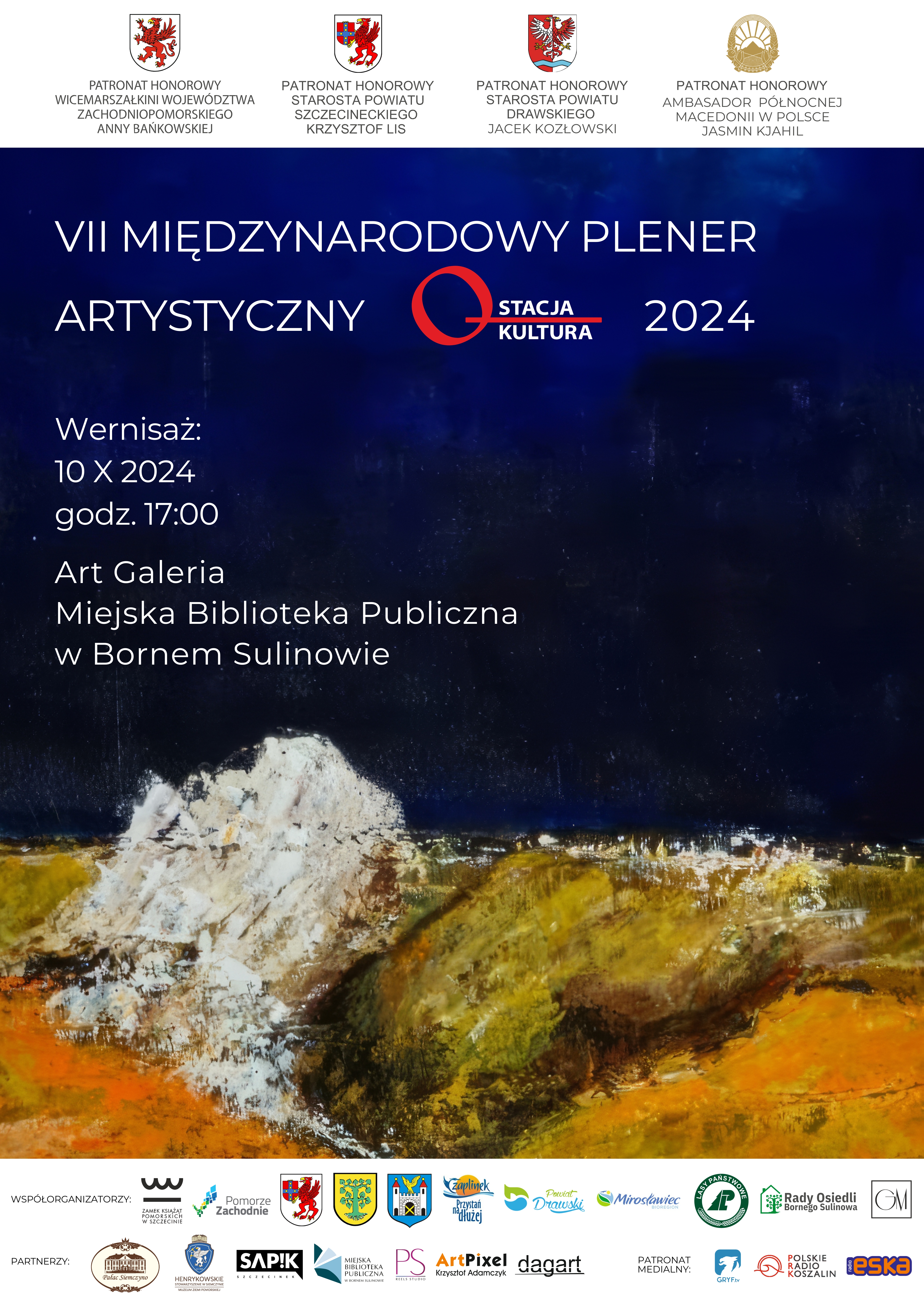 Miejska Biblioteka Publiczna w Bornem Sulinowie serdecznie zaprasza na wernisaż. Dzięki współpracy z Henrykowskim Stowarzyszeniem, „Stacja Kultura” po raz siódmy organizowała Międzynarodowy Plener Artystyczny 2024 w Pałacu Siemczyno, obecnie Muzeum Ziemi Pomorskiej.