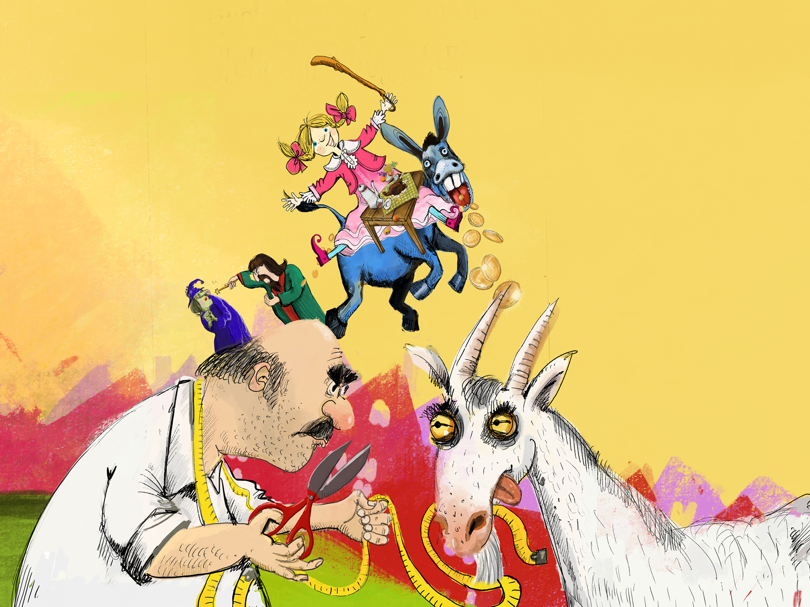 Biedny krawiec ma nieco krnąbrną kozę. Kiedy ta twierdzi, że dzieci krawca pozwoliły jej głodować, ten odrzuca całą trójkę. Franz, Gustav i Wiebke wyruszają w świat i uczą się zawodu. Pod koniec nauki każdy z nich otrzymuje pożegnalny prezent: mały stolik, złotego osła i kij z worka. Nie wiedzą, że choć mają różne profesje, wszyscy uczyli się od tego samego mistrza: maga Aldousa von Rübenschmalza. Jego rywalka, wiedźma Walpurga Drachenzahn, zastawiła na niego pułapkę i tylko dzięki temu podstępna koza była w stanie rozbić rodzinę krawców ... Więc Aldous próbuje teraz naprawić szkody.