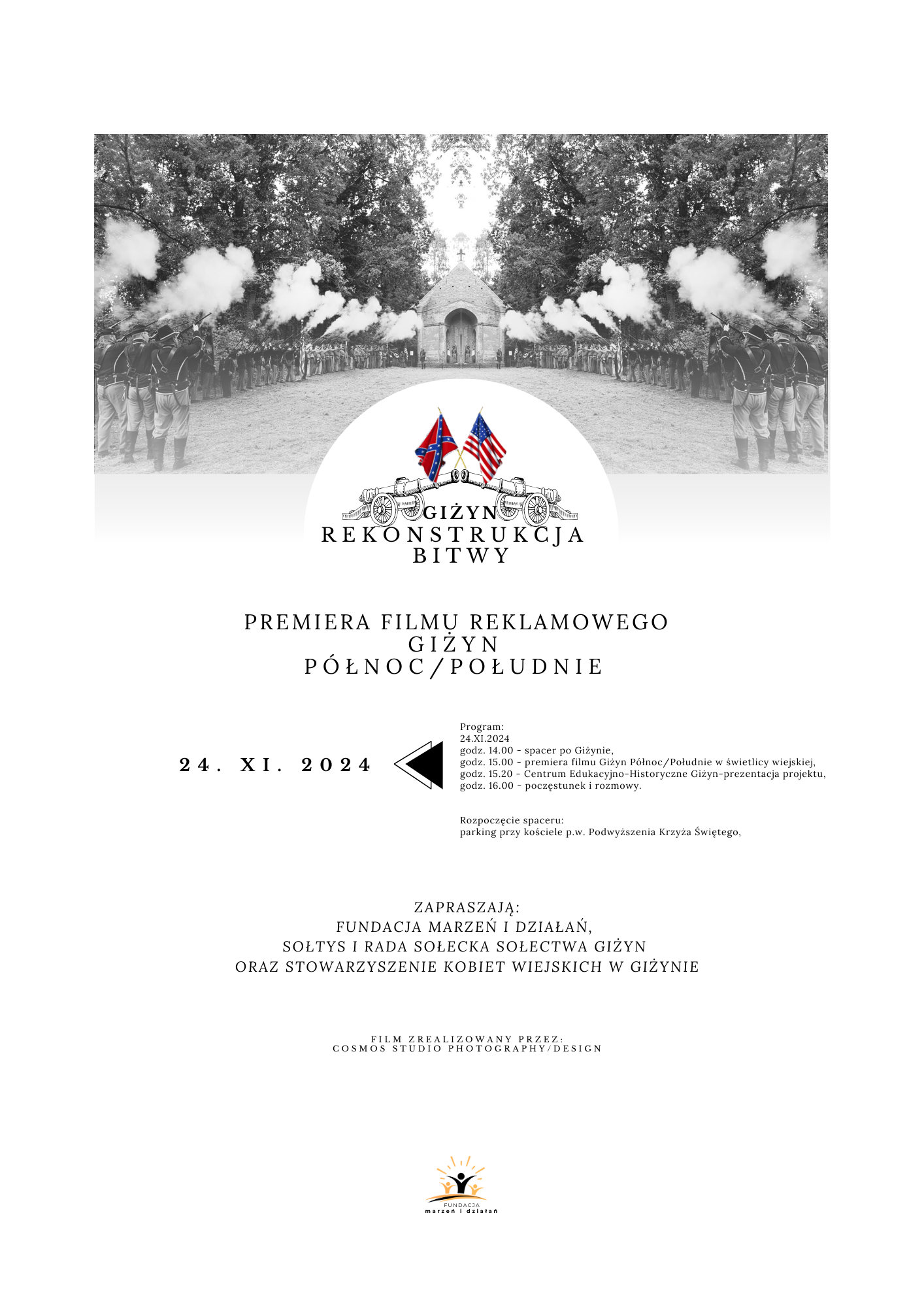Zapraszamy do Giżyna na premierę filmu reklamowego Giżyn Północ/Południe , który powstał podczas ostatniej Rekonstrukcji Bitwy. Film promuję bitwę oraz Giżyn i Gminę Nowogródek Pomorski