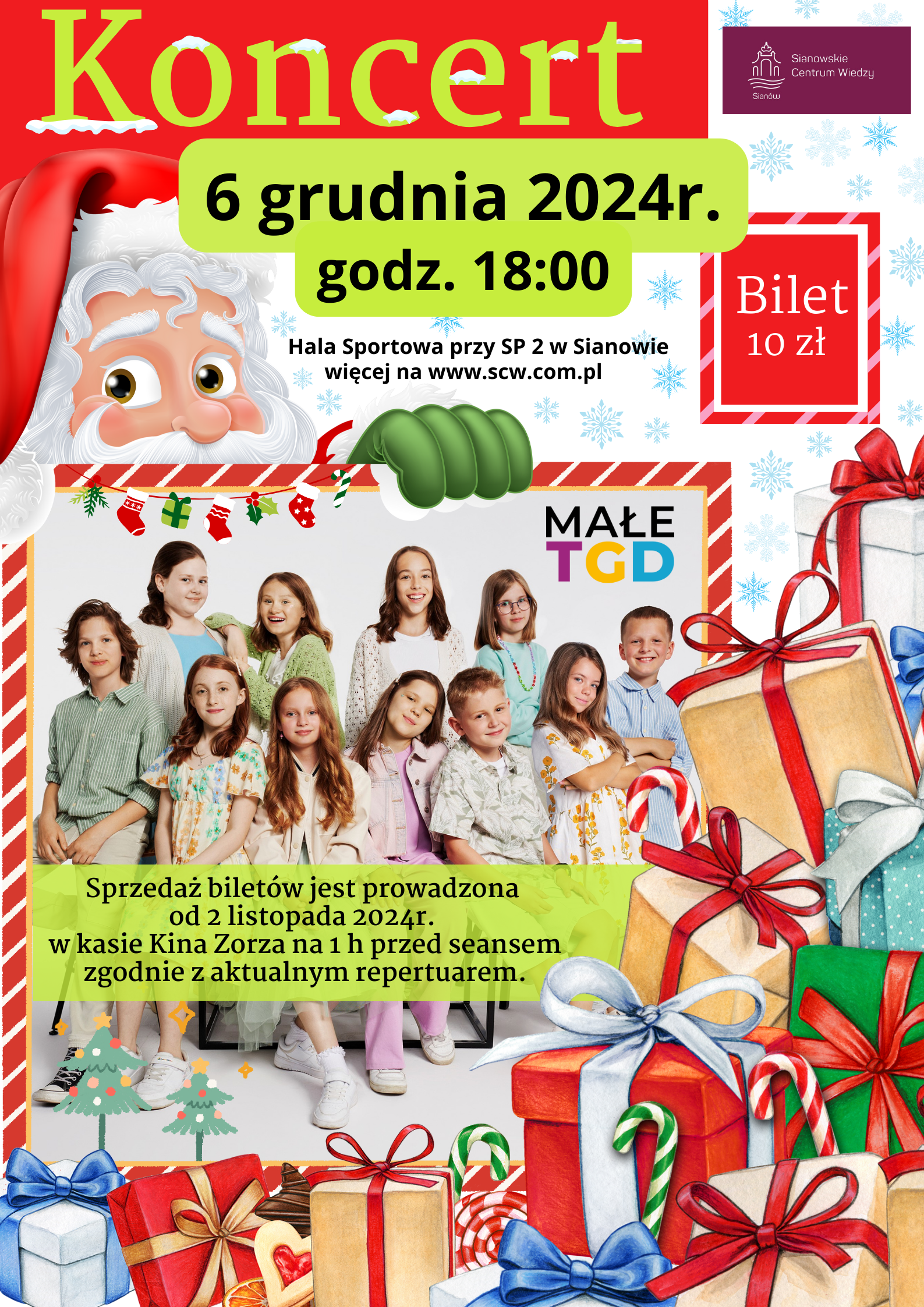 Już 6 grudnia zapraszamy na wyjątkowy Mikołajkowy Koncert, podczas którego wystąpi Małe TGD – zespół, który porwie Was do wspólnego śpiewania i świetnej zabawy!