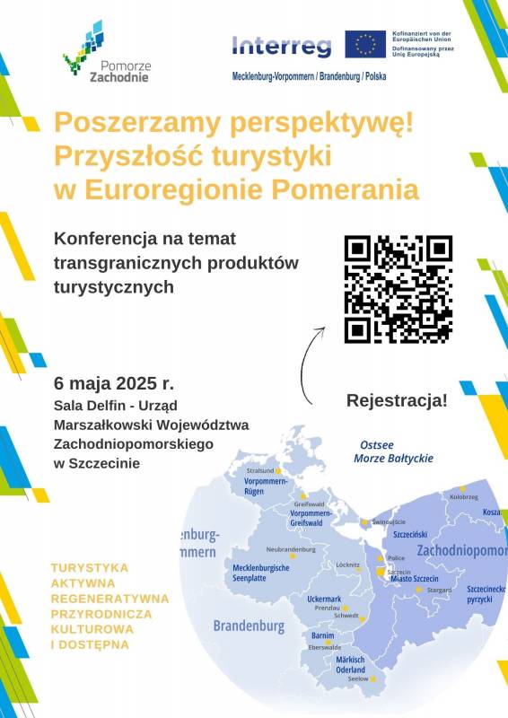 Dlatego z ogromną przyjemnością zapraszamy Państwa na konferencję „Poszerzamy perspektywę! Przyszłość turystyki w Euroregionie Pomerania”, która odbędzie się 6 maja 2025 roku w Sali Konferencyjnej Delfin w Urzędzie Marszałkowskim Województwa Zachodniopomorskiego w Szczecinie.