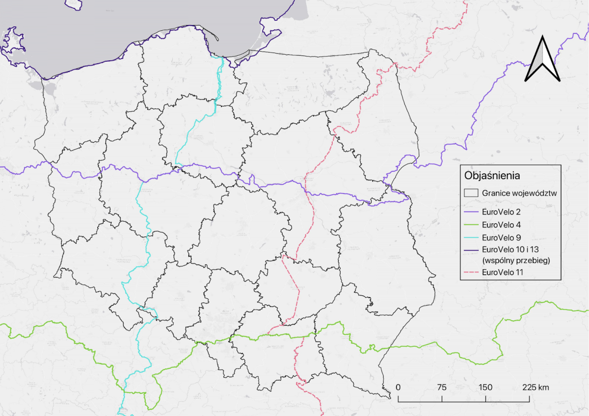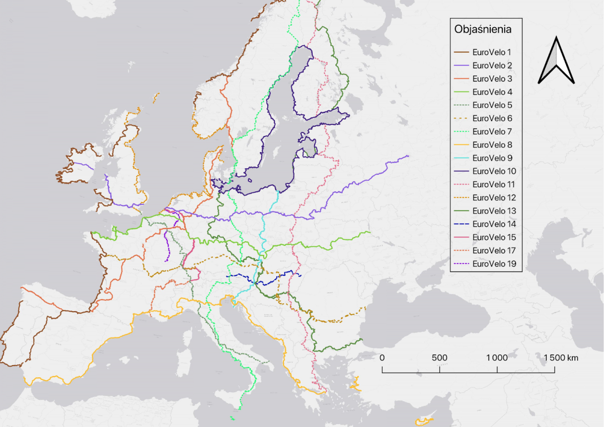 W granicach Polski biegnie sześć szlaków sieci EuroVelo o łącznej planowanej długości ok. 4828 km.