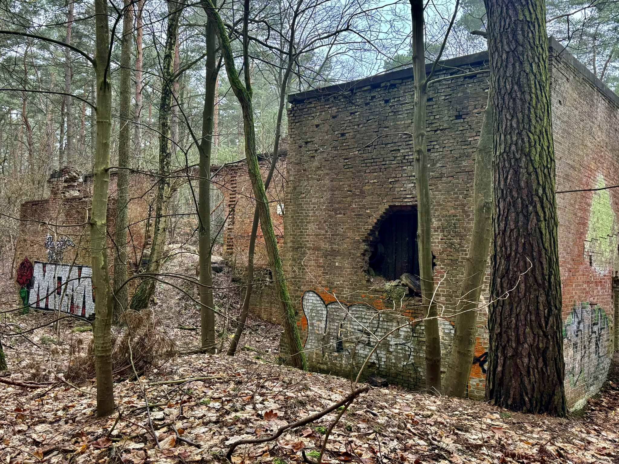 - An der Grenze zwischen Dąbie und Kijewo besuchen wir einen postdeutschen Schießplatz mit massiven Backsteinbauten.