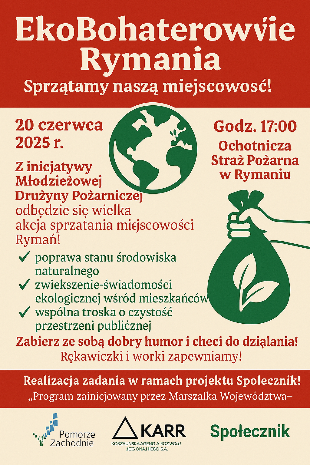 Die Ökohelden von Rymania sind eine Initiative der Jugendfeuerwehr von Rymania, die von den Freiwilligen Feuerwehrleuten unterstützt wird und zum Ziel hat, die Umwelt zu verbessern und das Umweltbewusstsein der Einwohner zu stärken. Im Rahmen des Projekts werden die Jugendlichen eine Reinigungsaktion in Rymania durchführen, bei der sie den herumliegenden Müll beseitigen und für die Sauberkeit der öffentlichen Flächen sorgen. Nach Abschluss der Aktion ist ein Imbiss für die Teilnehmer vorgesehen und es werden zwei Schulungsbereiche eingerichtet, in denen die Freiwilligen Feuerwehrleute den Jugendlichen die Grundlagen der Brandbekämpfung und der Ersten Hilfe vermitteln.