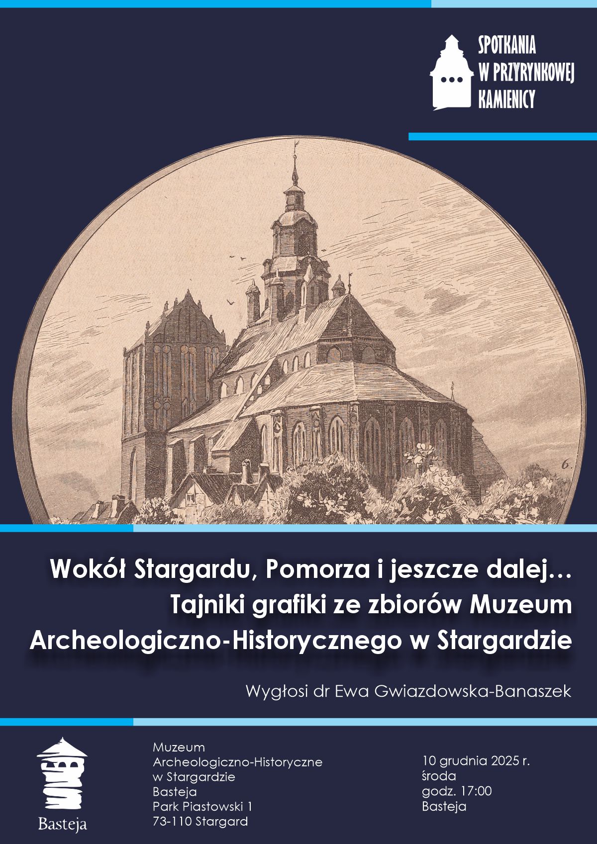 Der Vortrag mit dem Titel „Rund um Stargard, Pommern und noch weiter... Geheimnisse der Grafiken aus den Sammlungen des Archäologisch-Historischen Museums in Stargard” wird von Dr. Ewa Gwiazdowska-Banaszek vom Nationalmuseum in Stettin gehalten.