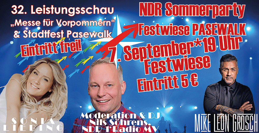 Festwiese Pasewalk*Beginn: 19:00 Uhr*Eintritt: 5 € – Kinder bis 12 Jahren frei!