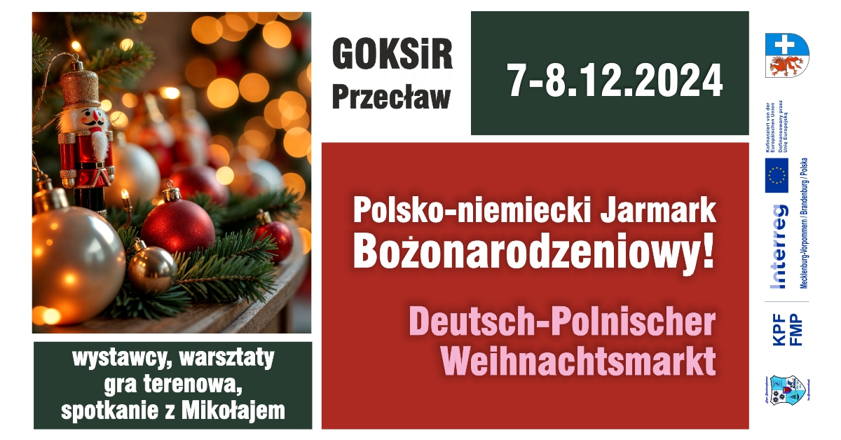Der deutsch-polnische Weihnachtsmarkt findet am 7. und 8. Dezember 2024 im Kulturzentrum in Przecław (GOKSiR) statt. Die Besucher erwartet ein abwechslungsreiches Programm mit kreativen Workshops und besonderen Begegnungen. Der Weihnachtsmarkt findet in der Grenzstadt Kołbaskowo statt und ist mit dem Auto leicht zu erreichen. Alle Attraktionen sind kostenlos und werden simultan übersetzt, um die Teilnahme für alle zu erleichtern.