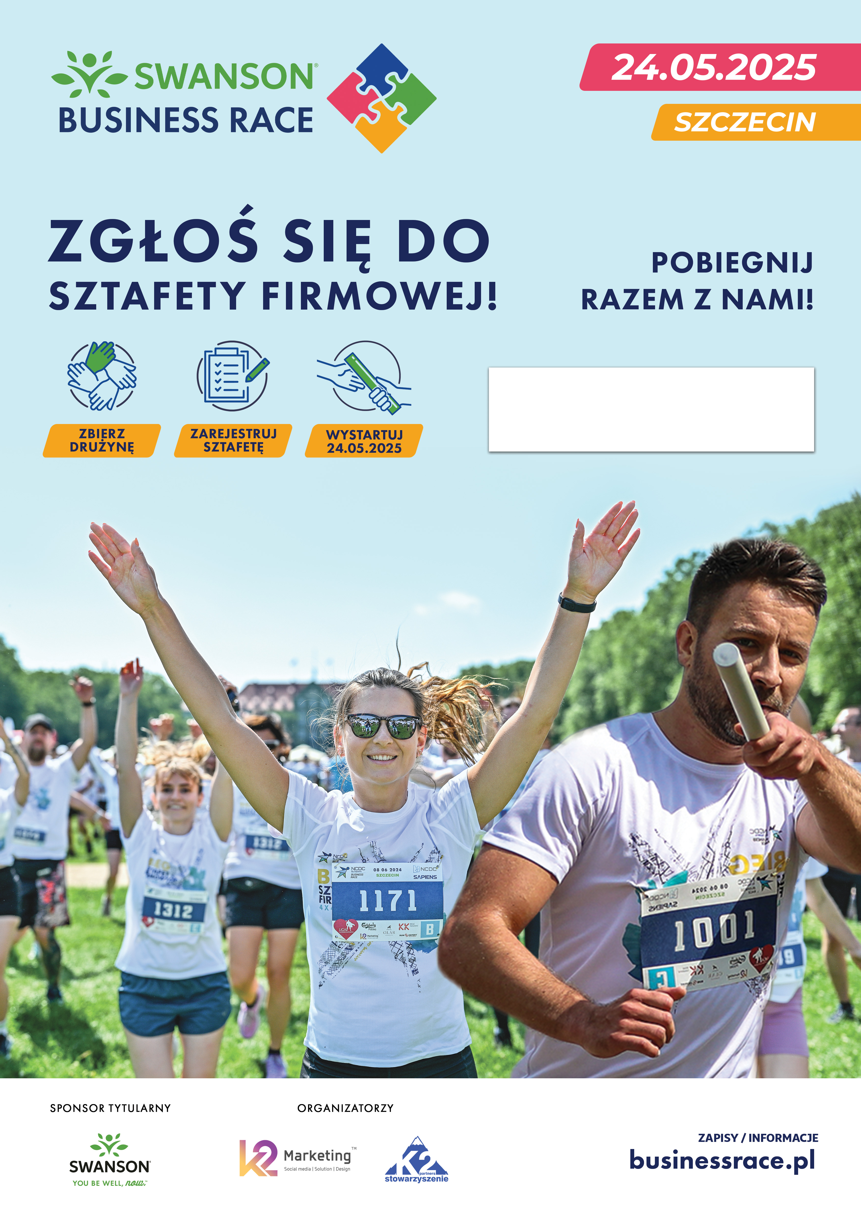Swanson Business Race is the first company relay run in the region, in which employees and company owners can participate. The Business Race takes place at the Jasne Błonia Park, and the relay consists of 4 people, and each participant has a distance of about 4 km to cover. The main objective of the Business Relay Race is to popularize and popularize running as the simplest form of physical recreation among employees of West Pomeranian companies, as well as to create opportunities for integration not only in the business field.