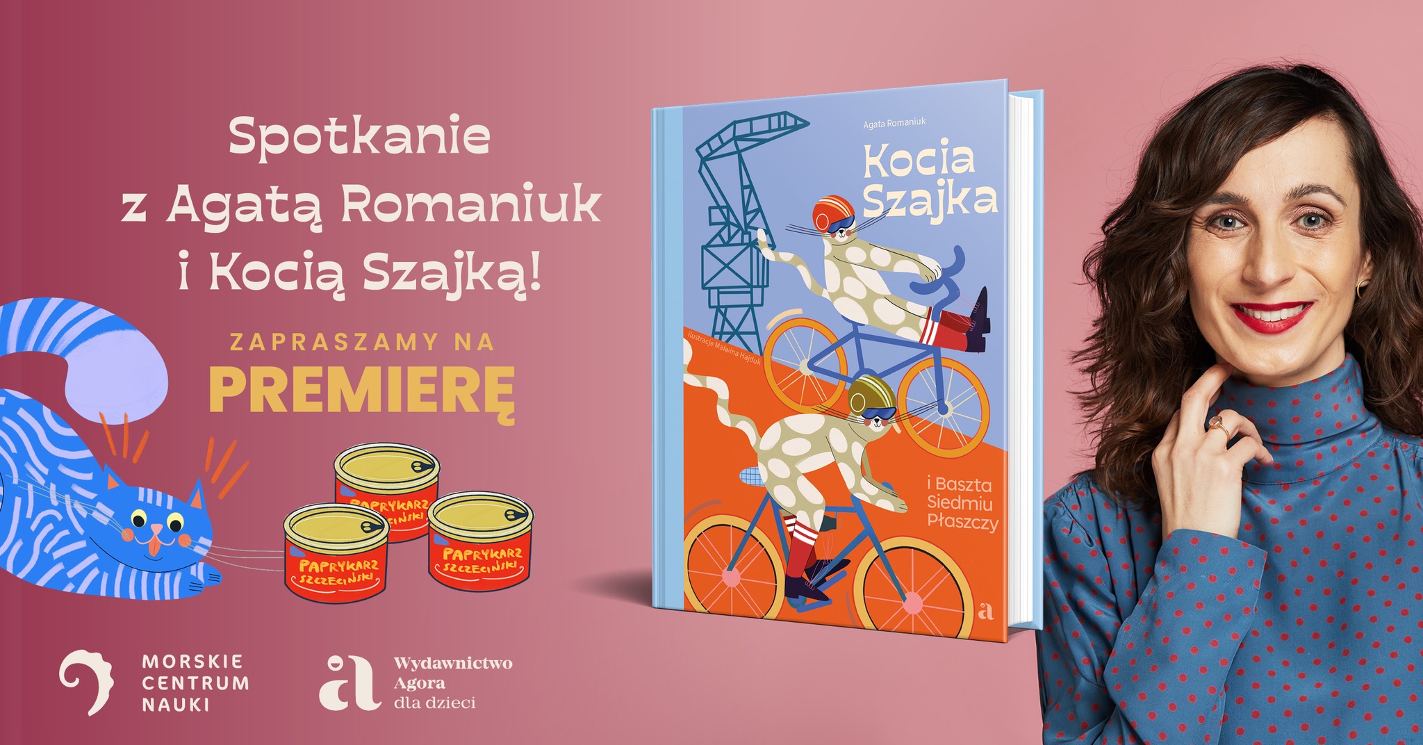 Ready for a beach party in Sopot and a detective claw adventure in Szczecin? Great. We invite you to the premiere of the book "Kitten Shaykh and the Tower of the Seven Coats". - The 10th volume of the series about the adventures of Cieszyn detectives, written by Agata Romaniuk and illustrated by Malwina Hajduk-Kawalec.It's going to happen! This time, Cieszyn cats, with strong character and great imagination in search of the next detective challenges, set off to Szczecin, full of mysteries! See for yourself... At last it's summer vacation! Cats are basking on the beaches of Sopot, enjoying ice cream on a stick and planning an evening dance for three claws. Meanwhile, disturbing news is coming from Szczecin. The three steel giants, known as levosaurs, usually light up the city with a thousand lights. However, lately someone has been regularly twisting the light bulbs out of them... To the glee of the mouse! Bronka feels a criminal case on her mustache. Farewell to the sunset tangles. The cats hop on their bicycles and set off along the coastal route to meet their next adventure. "*The series was inspired by the bespoke fairy tales, told by Agata Romaniuk on the feebase group Wieczorynka throughout the spring lockdown of 2020. The author fulfilled the wishes of children, improvising stories around the themes submitted to her - the adventures of cats Lola and Komandos, turned out to be so engaging that a book had to be created from them. Illustrations were created by designer and illustrator, Malwina Hajduk.WHO ARE WE WAITING FOR? For children aged: 6-8 with their families WHEN do we see you? May 21, 2025, at 5:00 pm WHERE DO WE GATHER? Temporary Exhibition Area of the Maritime Science Center (1st floor) The event is partnered by: Maritime Science Center Radio Szczecin Children's Time Active Reading Municipal Public Library in Szczecin Agata Romaniuk - Writer, reporter, sociologist. Cat lady in love with adventures and small towns. As Ms. Evening News, she tells impromptu fairy tales on the Internet at the request of children. She is the author of a series of detective novels "Kitten Shay," a series for preschoolers "Precelek" and the book "Tolo and Bolo save Fox Mountain." Admission is free. You are cordially invited!