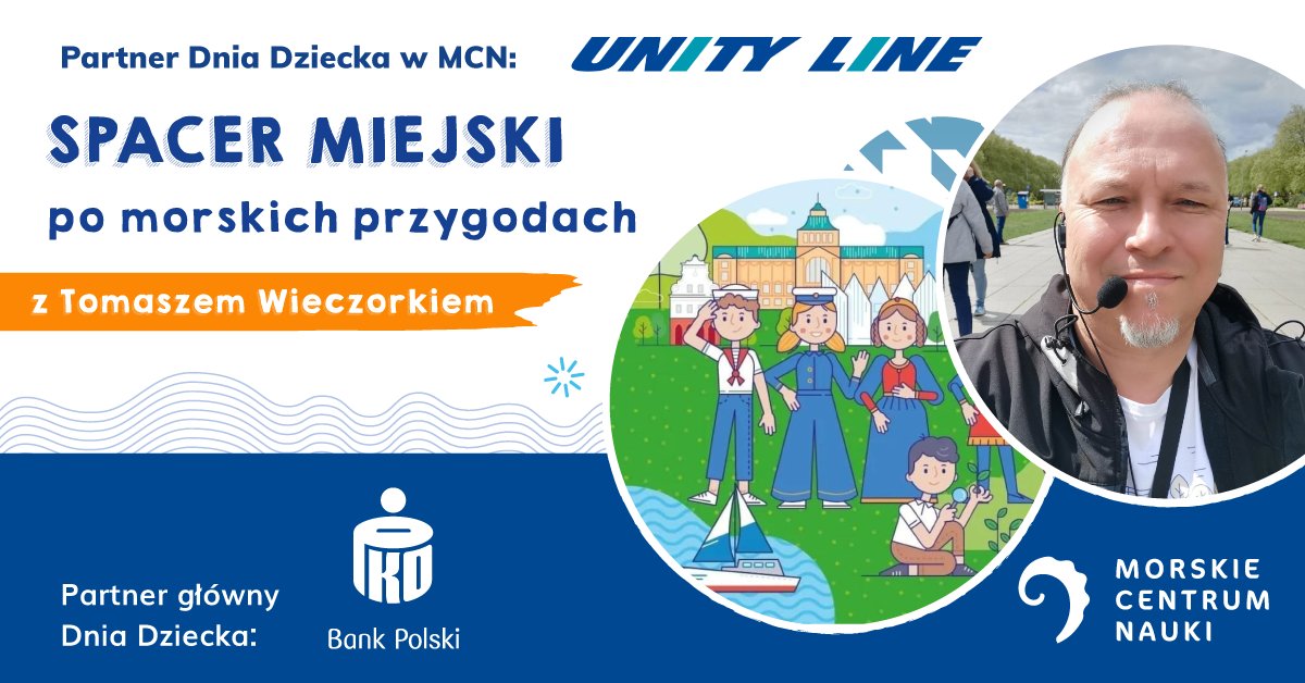 We start from under the fountain at Wały Chrobrego, our finish line will be the Maritime Science Center. Planned route: 1. Wały Chrobrego 2. Lumumba Square 3. Women's Rights Square 4. Centaur Fight 5. Pyramid and Unicorns 6. Tritons 7. Belvedere 8. Stone Gates 9. Gallery of Coats of Arms 10. Jan Wyszak 11. Jan of Kolno 12. Poseidon's Lighthouses 13. School on the water 14. Smiling Shark 15. Christopher Columbus 16. Underground Szczecin 17. Gallery of murals 18. Catherine Church & Cistercians 19. Szczecin Sea Boundary 20. Dragon's Head 21. Ludojad & Raft 22. Umbriaga & Smieszka 23. Mermaid & Lajkonik 24. Titanic 25. Hanseatic 26. Wyszak's boat 27. Silver of the city 28. Maciejewicz - captain of captains 29. Indestructible Church of Dancing Pillars 30. Oldest bridge of Szczecin 31. Szczecin smelling of chocolate 32. Haunted ship 33. Ship turned into a building See you there! The Main Partner of the Children's Day at the Maritime Science Center is PKO BP. The partner of the event is Unity Line. Media Partner of the event is wSzczecinie.pl