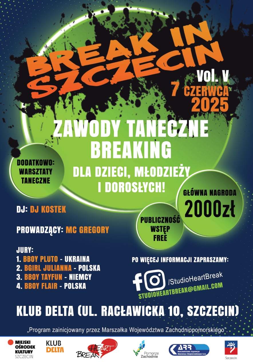 English below. breaking dance battles for children, teenagers and adults! On the day of the competition there will be dance workshops and with invited dancers Put the date in your calendar ???? ????️Place: Delta Club (Raclawicka 10 Street, Szczecin) ????️Date: June 7, 2025 Entry fee: *50 PLN - 1vs 1 *100 PLN - 2vs2(50 PLN per person) For those participating in two categories 80 PLN per person for two categories DJ: Dj kostek Host: Mc Gregory Jury: 1. Bboy Pluto - Ukraine 2. Bgirl Julianna - Poland 3. Bboy Tayfun - Germany Categories: * "Beginners up to 10 months of dancing" - up to 6 years of age -7 - 9 years of age -10 - 12 years of age * "1 vs 1 separately Bgirls and Bboys over 10 months of dancing" - up to 9 years of age -10 - 12 years of age -13 - 15 years of age * "1 vs 1 PRO " - for people from 16 years of age * "2 vs 2" - up to 12 years of age - up to 15 years of age * " 2 vs 2 PRO" For people from 16 years of age ????????Prizes????????: ????3 and 2 ' places - diplomas and cups ????1 places - diplomas, cups and prizes in kind ????1 places in "1 vs 1 PRO" and "2 vs 2 PRO" - diplomas, cups, material prizes and cash???? ???? ‼️‼️????1 vs 1 PRO - 1000 zł ‼️‼️ ‼️‼️????2 vs 2 PRO - 2000 zł ‼️ ‼️ ‼️‼️Uwaga‼️‼️ Information is continuously updated Follow our posts on a regular basis ???? More details coming soon!