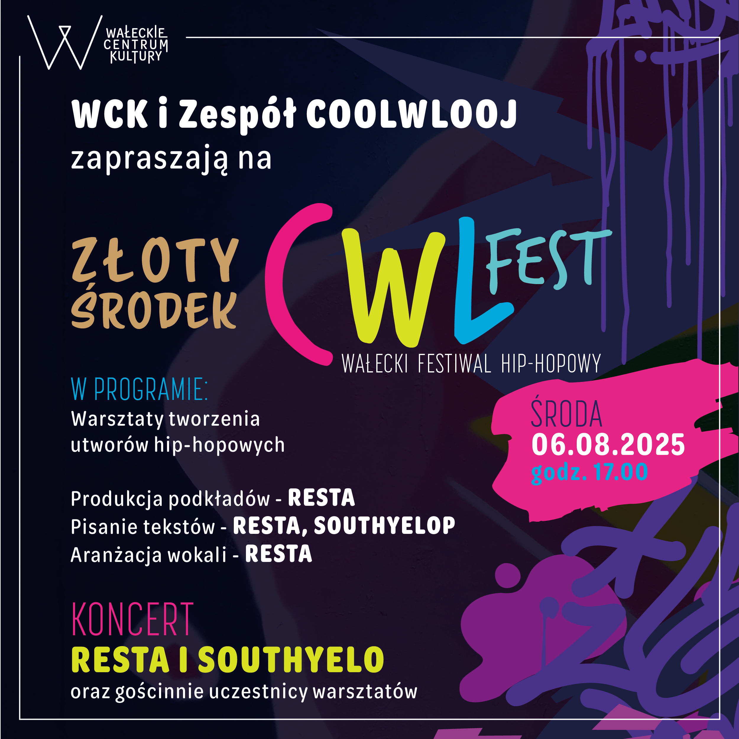 Rhymes, rhythm, and reality – these are the three ingredients that define hip-hop. At the Wałcz Cultural Center, they will come together exactly where they should: at the Golden Mean. CWL Fest is an event created jointly by the WCK and the band "coolwlooj" – for those who want to create, not just listen.