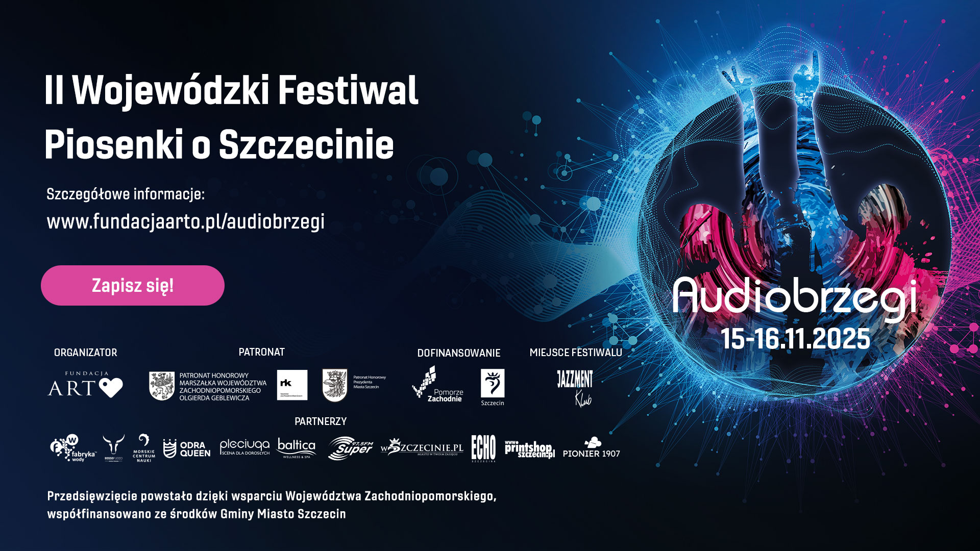 The Arto Foundation invites children aged 9 and above, teenagers, adults, and seniors to participate in the 2nd Provincial Song Festival about Szczecin, "Audiobrzegi 2025," which will be held under the honorary patronage of Piotr Krzystek, Mayor of Szczecin, Olgierd Geblewicz, Marshal of the West Pomeranian Province, and the Women's Council at the Mayor of Szczecin.