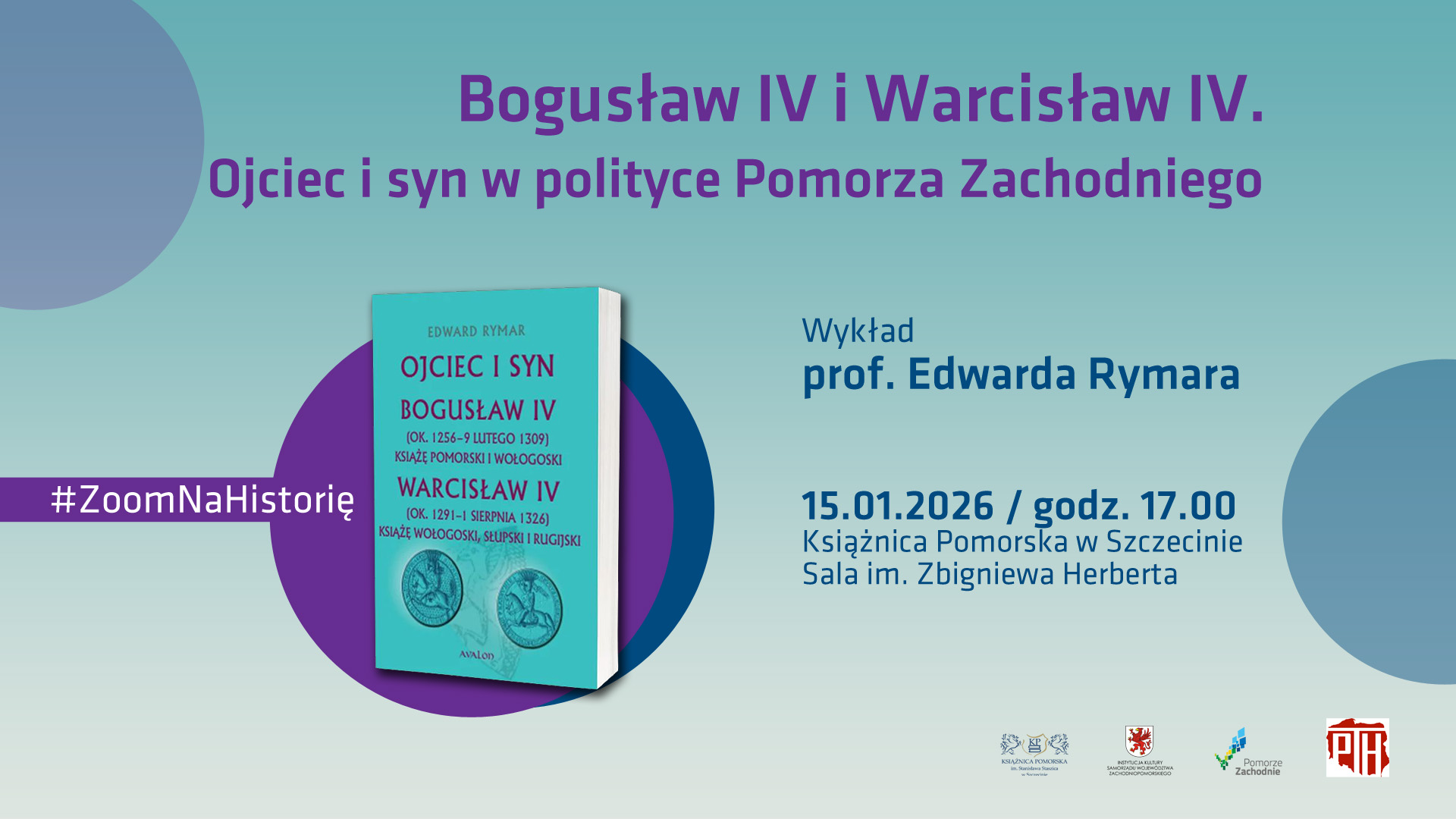 The starting point for the lecture will be the author's latest book, "Father and Son. Bogusław IV (c. 1256 - February 9, 1309), Duke of Pomerania and Wolgast. Warcisław IV (c. 1291 - August 1, 1326), Duke of Wolgast, Słupsk, and Rügen," dedicated to two rulers who governed Western Pomerania at the turn of the 13th and 14th centuries. The monograph presents a key period in the history of the region, in which, despite the formal division of the state in 1295 into the Szczecin and Wolgast parts, Western Pomerania functioned on many levels as a politically coherent entity.