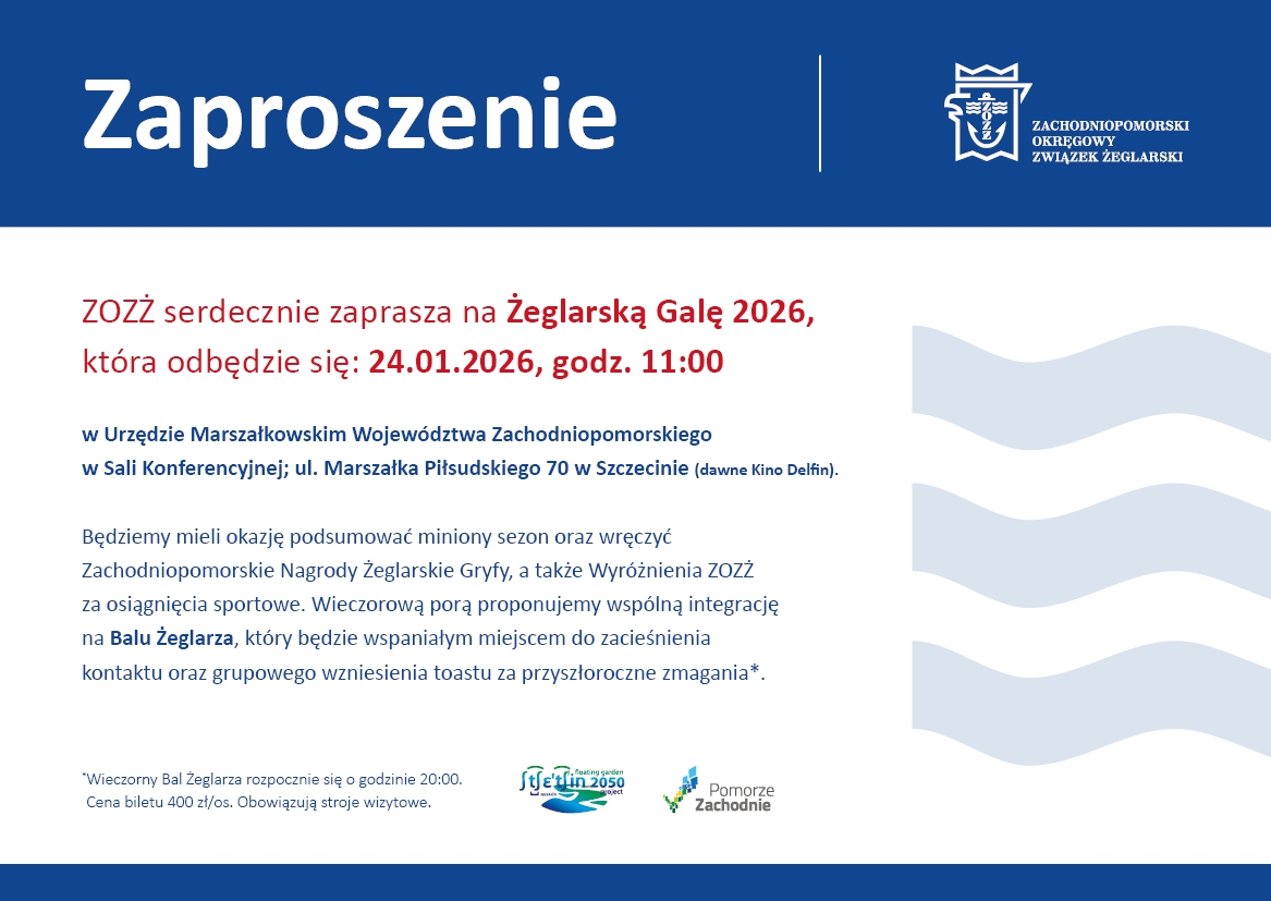 The 2026 Sailing Gryf Gala is a ceremonial summary of the 2025 sailing season in the West Pomeranian Province and an opportunity to honor the best competitors, coaches, and activists associated with sailing in our region.
