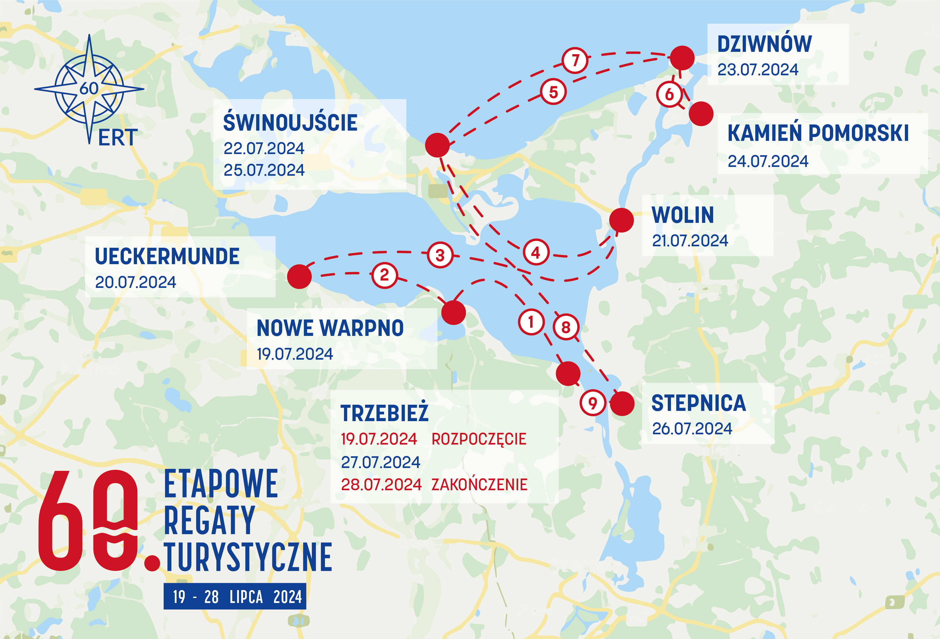 The program of the Stage Tourist Regatta includes a sailing trek between the ports of: Trzebiez, Nowy Warpno, Ueckermünde. Wolin , Swinoujscie, Dziwnow, Kamien Pomorski, Swinoujscie, Stepnica, Trzebiez in Western Pomerania. The premise of the ERT is to develop and popularize sailing tourism, to facilitate a part of society, especially children and young people, recreation on water and to popularize good sailing customs. The regatta promotes sailing in the cities and municipalities, marinas, entrepreneurs of Western Pomerania. The undertaking is addressed to sailors from all over Poland. The regatta program includes official ceremonies, to which we cordially invite you to the Yacht Port in Trzebiez: