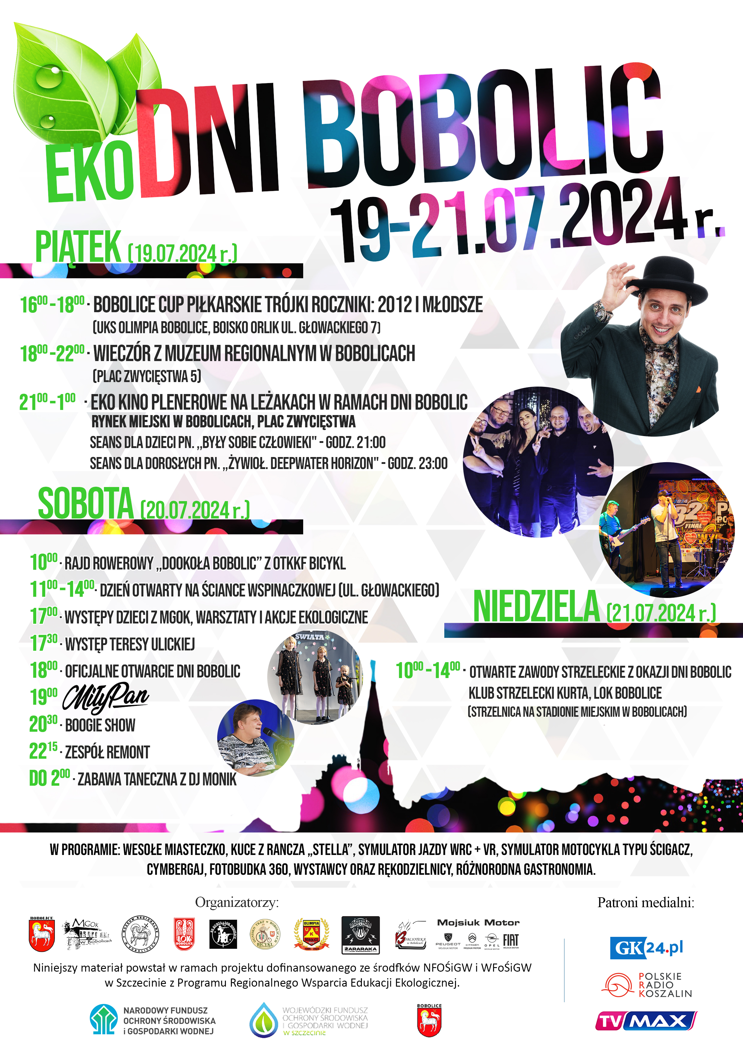 Bobolice Mayor Marek Golas together with Kamilla Marciniak Director of the Bobolice Municipal Cultural Center and the co-organizers and media patrons cordially invite you to this year's EKO Days of Bobolice. We have prepared a power of attractions for you: