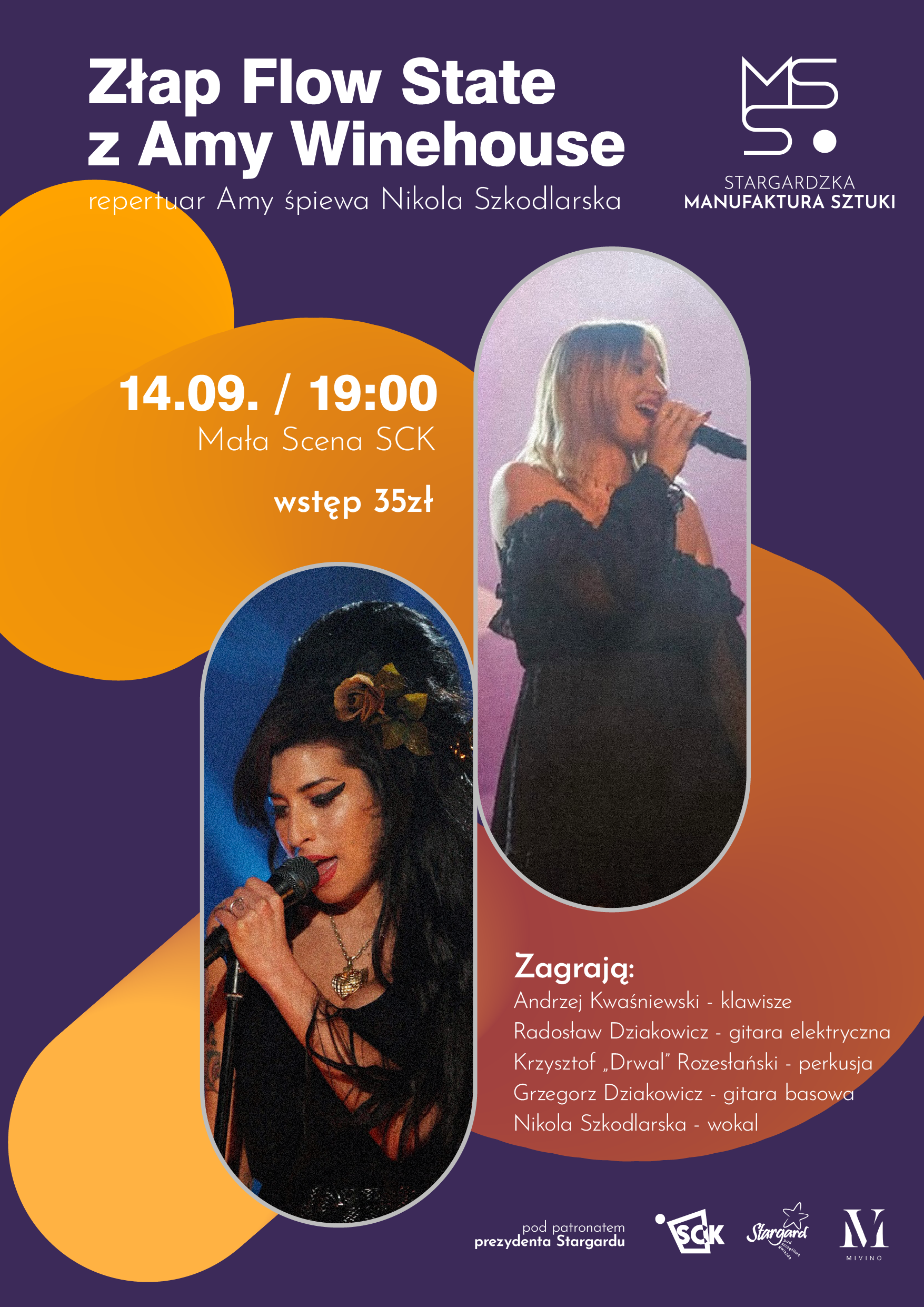 Ticket price(s): 35 złLink to ticket store: https://sck.stargard.pl/kalendarz-wydarzen/stargardzka-manufaktura-sztuki-zlap-flow-state-z-amy-winehouse/Organizer (name of institution or first and last name): Stargardzkie Centrum Kultury