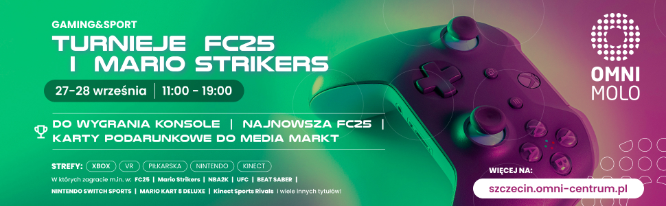 On the last weekend of September, OMNI Molo will transport you to the world of computer games! With us you will play timeless titles, as well as test yourself in FC25 and Mario Strikers games. To win: consoles, the latest FC25, as well as gift cards to Media Markt. You have to be with us!