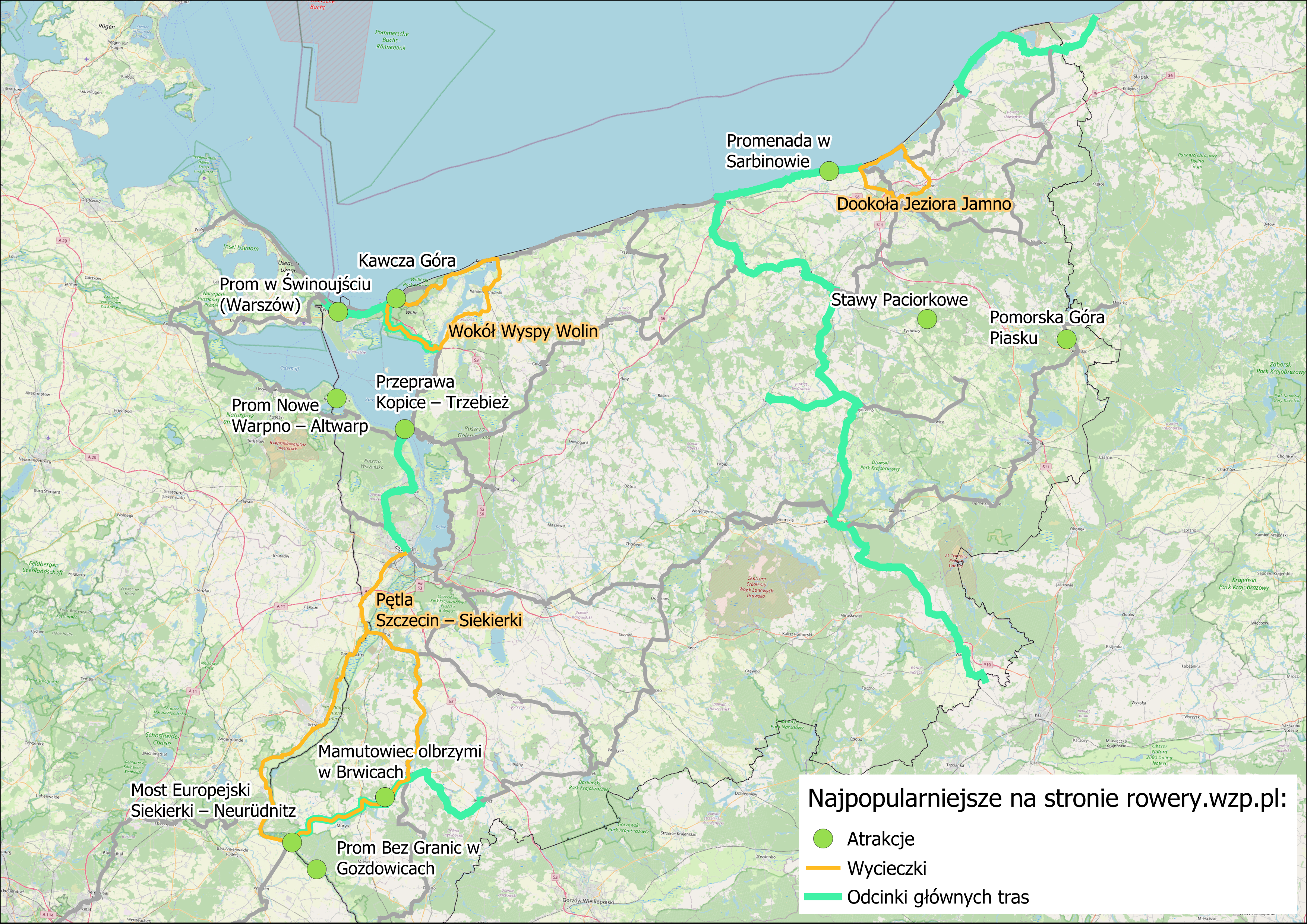 Kawcza Góra(1,701), Pomorska Góra Piasku(1,420), the Kopice – Trzebież crossing(1,264) and the Prom Bez Granic ferry in Gozdowice(1,013) also enjoyed great popularity. The conclusion is obvious – Western Pomerania is all about bikes, ferries, and... mountains.