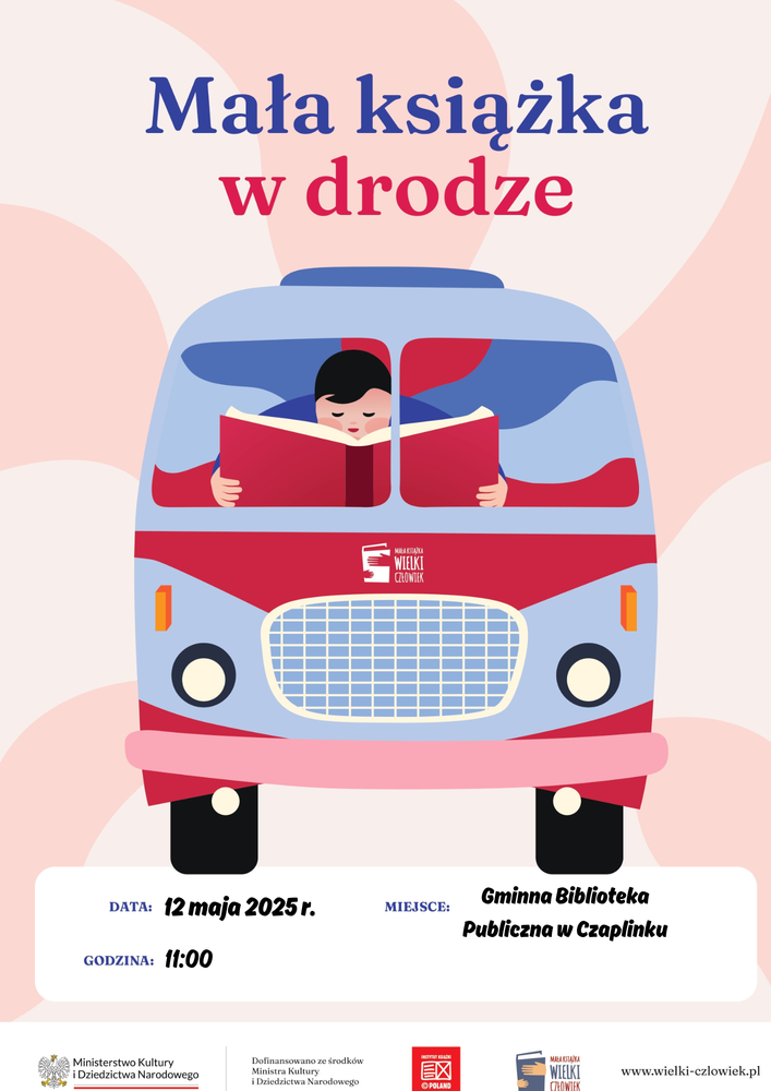 "Маленька книжка в дорозі" Публічна бібліотека ім. Чаплінека запрошує вихованців дитячих садків (4-6 років) з міста та гміни взяти участь в акції "Маленька книжка - велика людина". Група з найбільшою кількістю нових учасників до 6 травня отримає приз - участь в унікальному майстер-класі з читання з культурним аніматором!