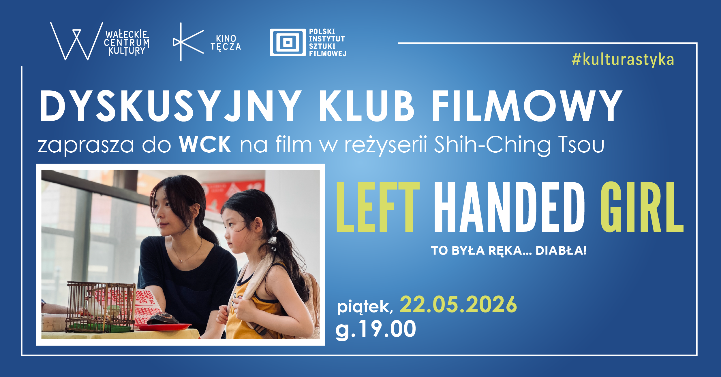 Ціна(и) квитка(ів): 10 złПосилання на магазин квитків: https://www.bilety24.pl/kup-bilet-na-1598-left-handed-girl--153160?hash=MjEzNTU2MTkyNg%3D%3D&id=911177&fbclid=IwdGRjcARYOzRjbGNrBFg7LWV4dG4DYWVtAjExAHNydGMGYXBwX2lkDDM1MDY4NTUzMTcyOAABHvX5KjT9fYftYh1ssSEXuum8M87fU7O0VuZWbR9zr0bf_ihm_pF9B4pO9wTw_aem_gOj_lAkgVcvqZ1eHnLBH7QОрганізатор (назва установи або прізвище): Wałeckie Centrum Kulturyhttps://wckwalcz.pl/kalendarz-wydarzen/2026/05/22/dkf-left-handed-girl-to-byla-reka-diabla.html